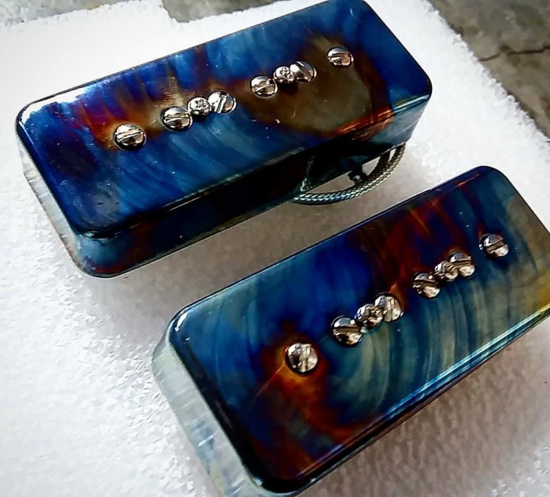 J'ai joué ma Little Siter avec des P90 maison (B&G), la Gibson donc avec son P90 Gibson, La LP Junior Le Pape avec son SP Custom, ma Dusenberg 52 Senior avec son équivalent de P90 Duesenberg, Ma Dagrite avec les P90 Daguet.