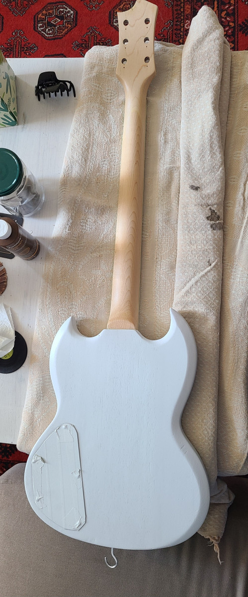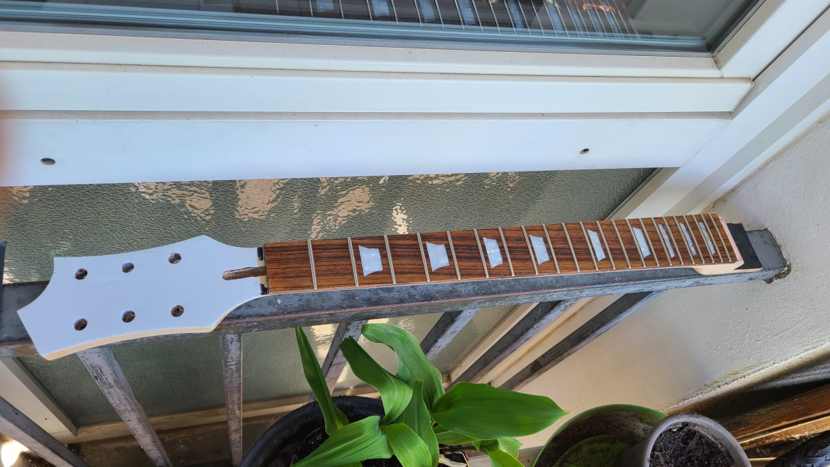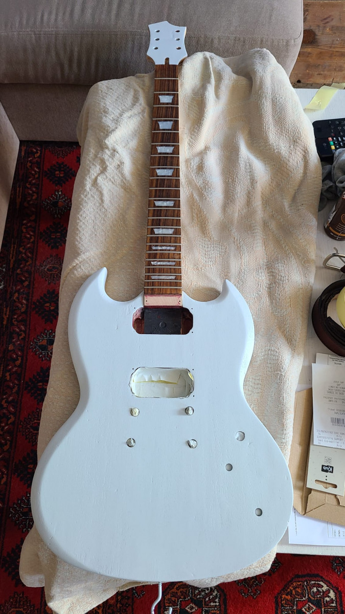 Un joli petit aperçu de la guitare lorsqu'elle sera remontée...