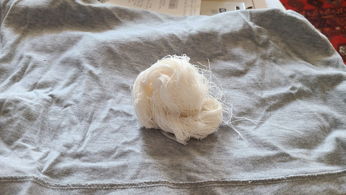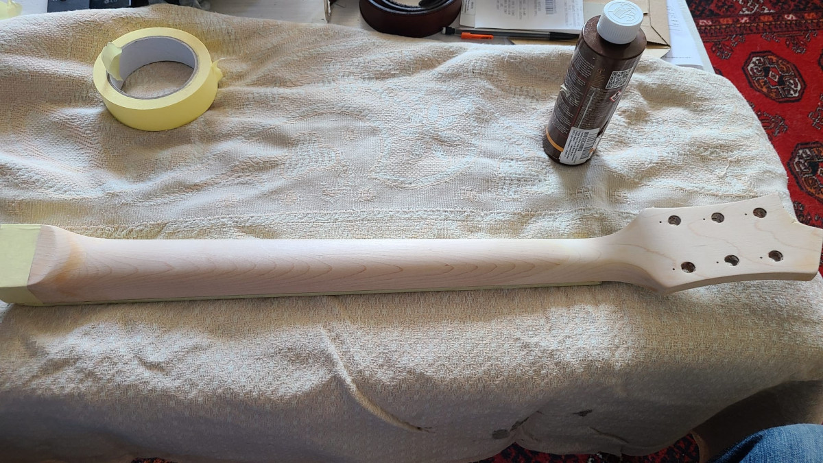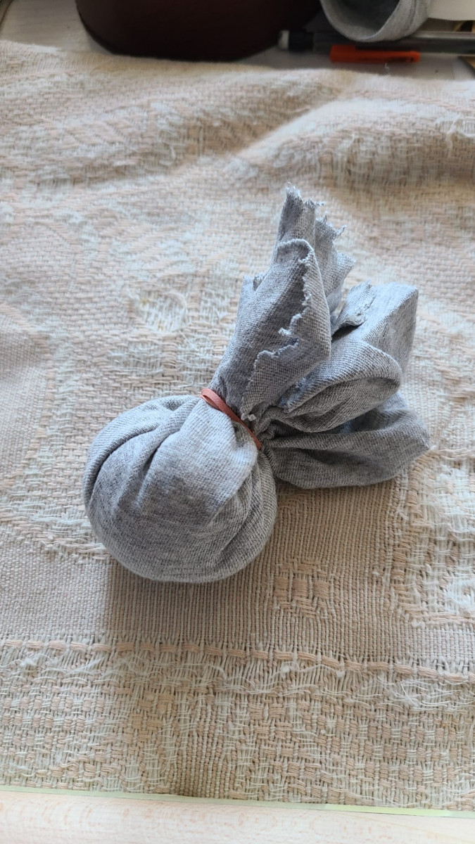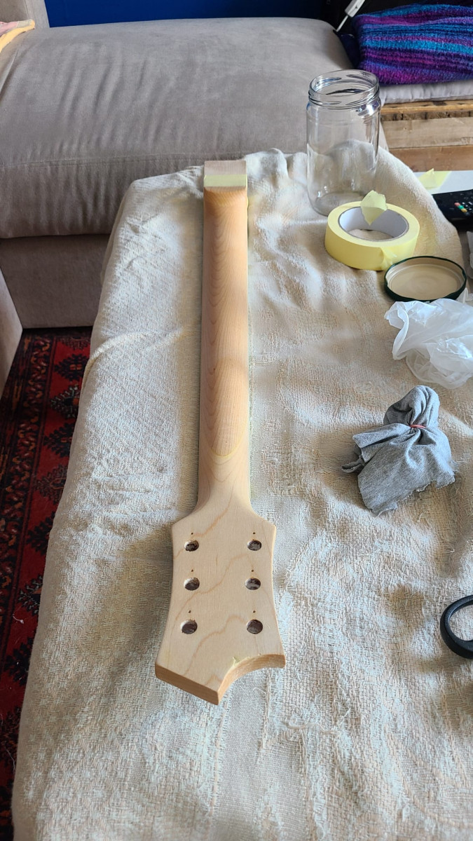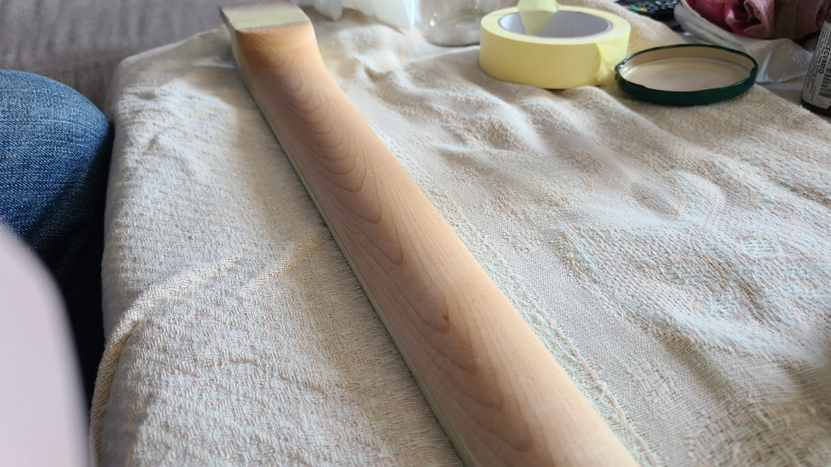 Je me suis décidé pour du danish oil, et pour l'appliquer je me fais un petit tampon avec un chiffon doux que je garnis de mèche de coton.
