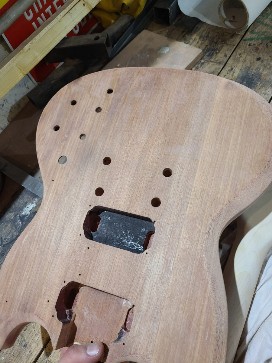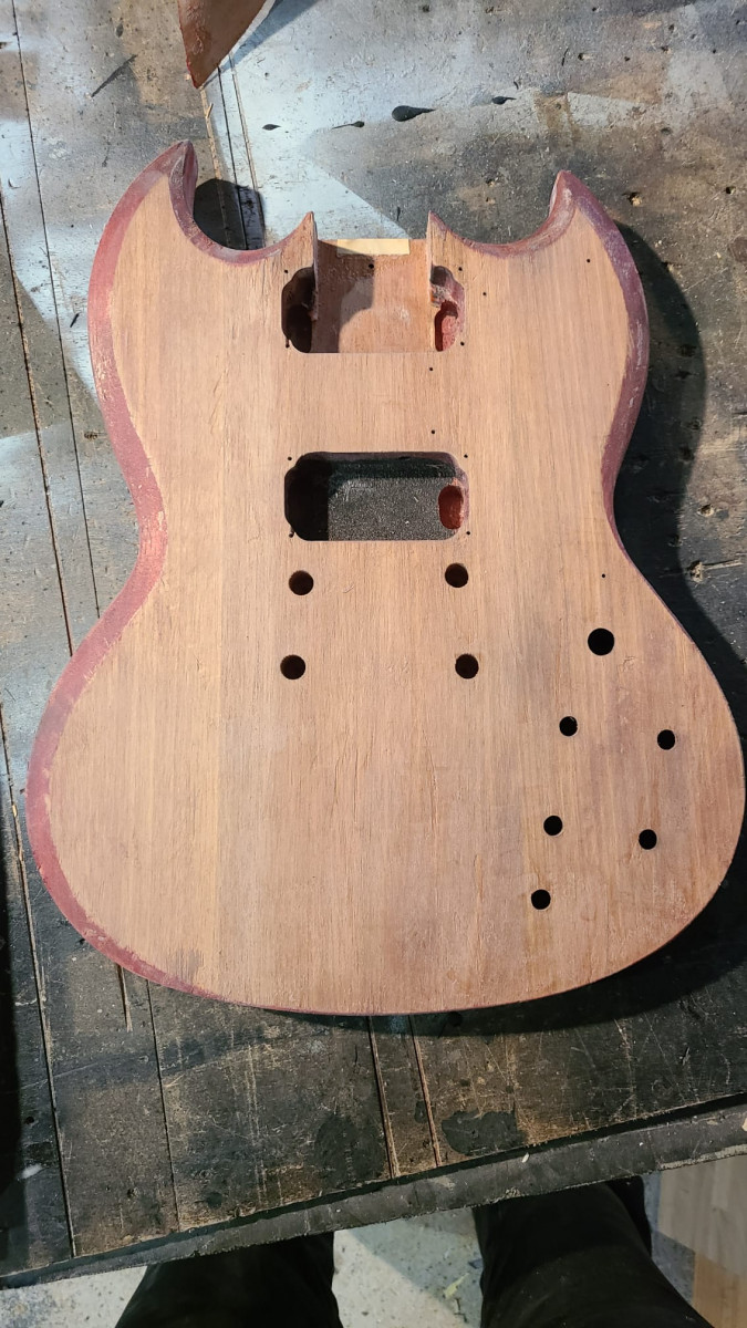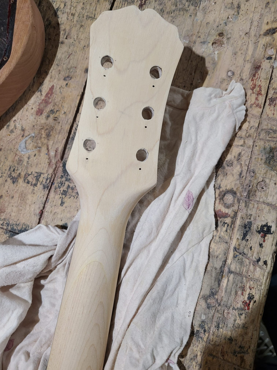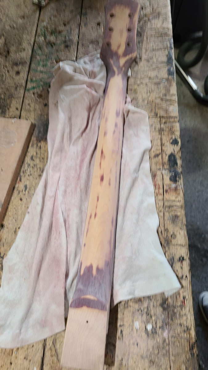 Ca me donne des idées pour la finition, je pense que l'arrière du manche restera en couleur naturelle et juste huilé.