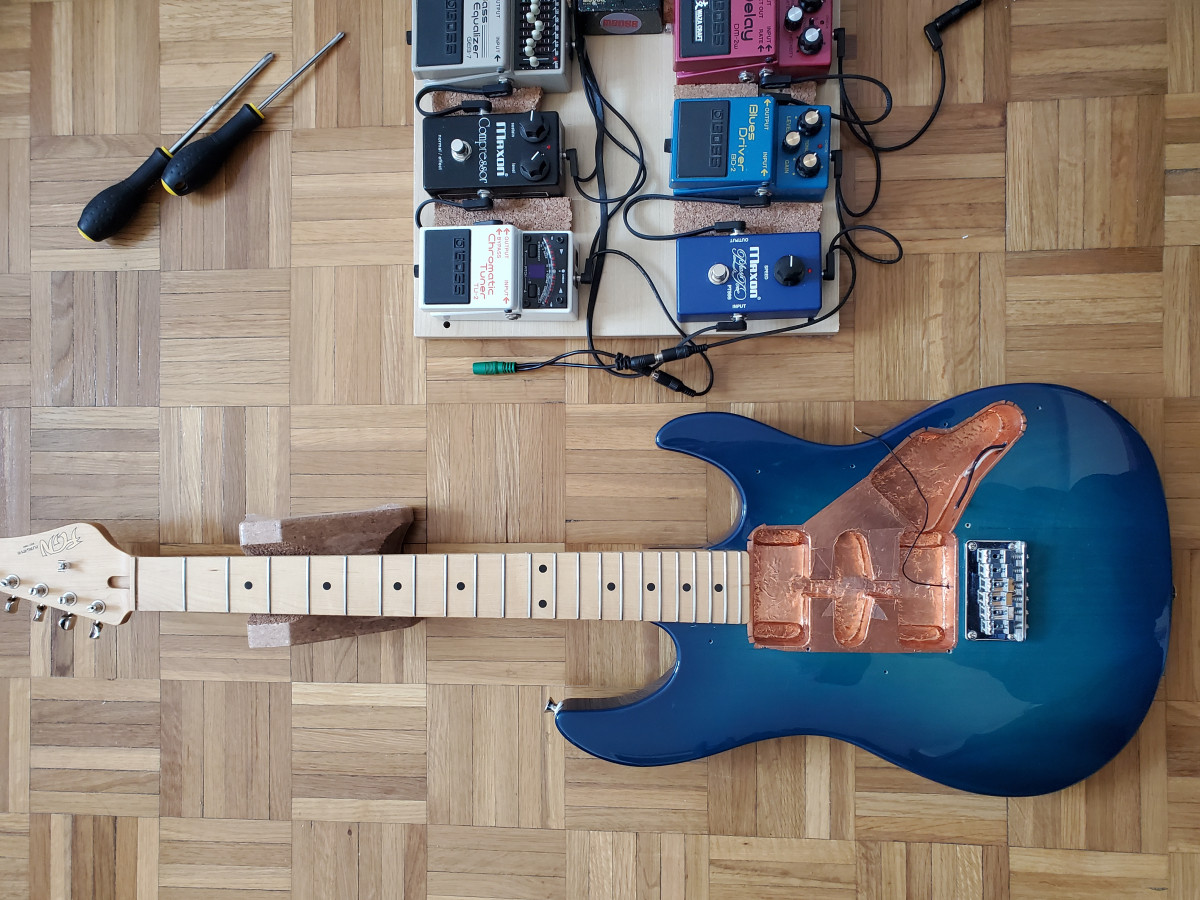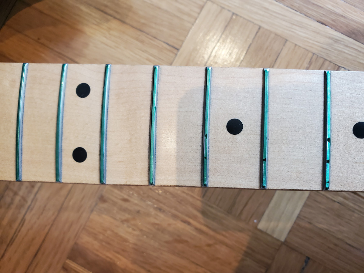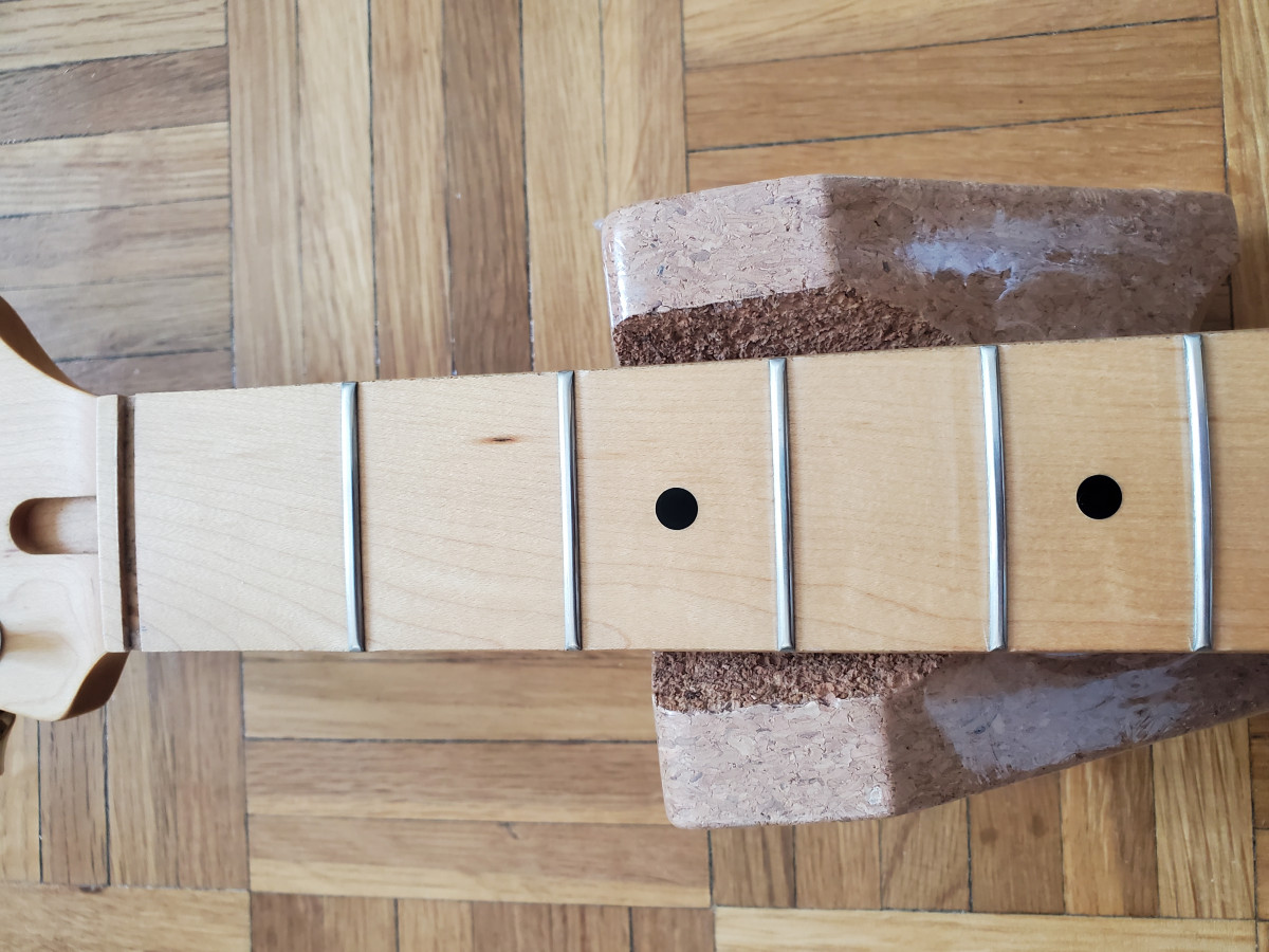 Je crois que comme dans tout bricolage il faut prendre son temps et penser au coup suivant, prochaine étape, pour ne pas faire de connerie. La semaine prochaine je vais m'attaquer à sa soeur qui a un problème de planeité mais les frettes en meilleur état.