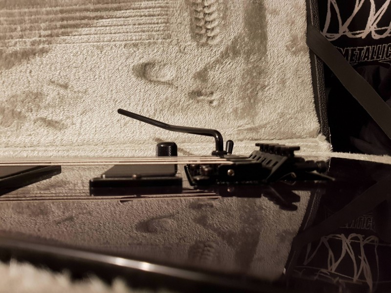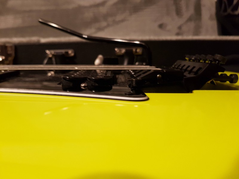 J'ai changer le 9-42 d'origine par un 10-46 accordée en D#G#C#F#A#D# mais j'ai assez vite remarqué un petit soucis. En effet quand je tire sur le floyd rose pour augmenter la tonalité des notes je peux pas aller bien loin, ça frise assez vite