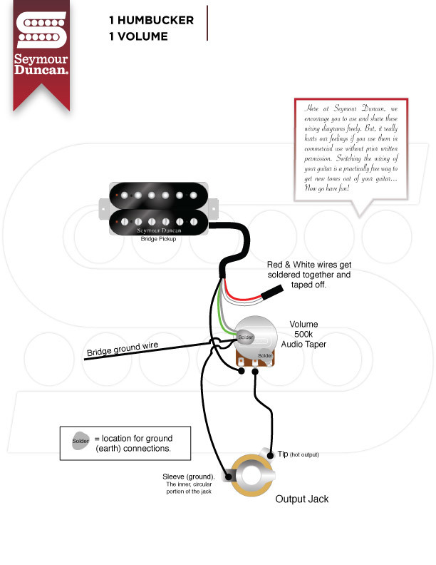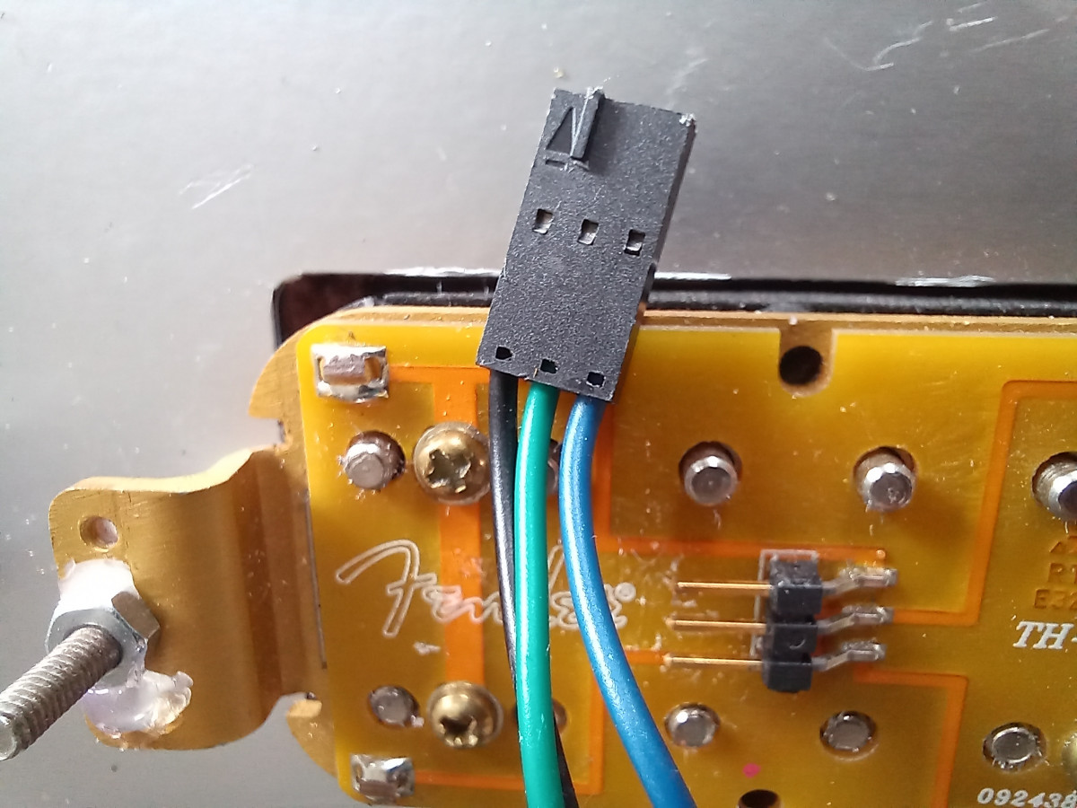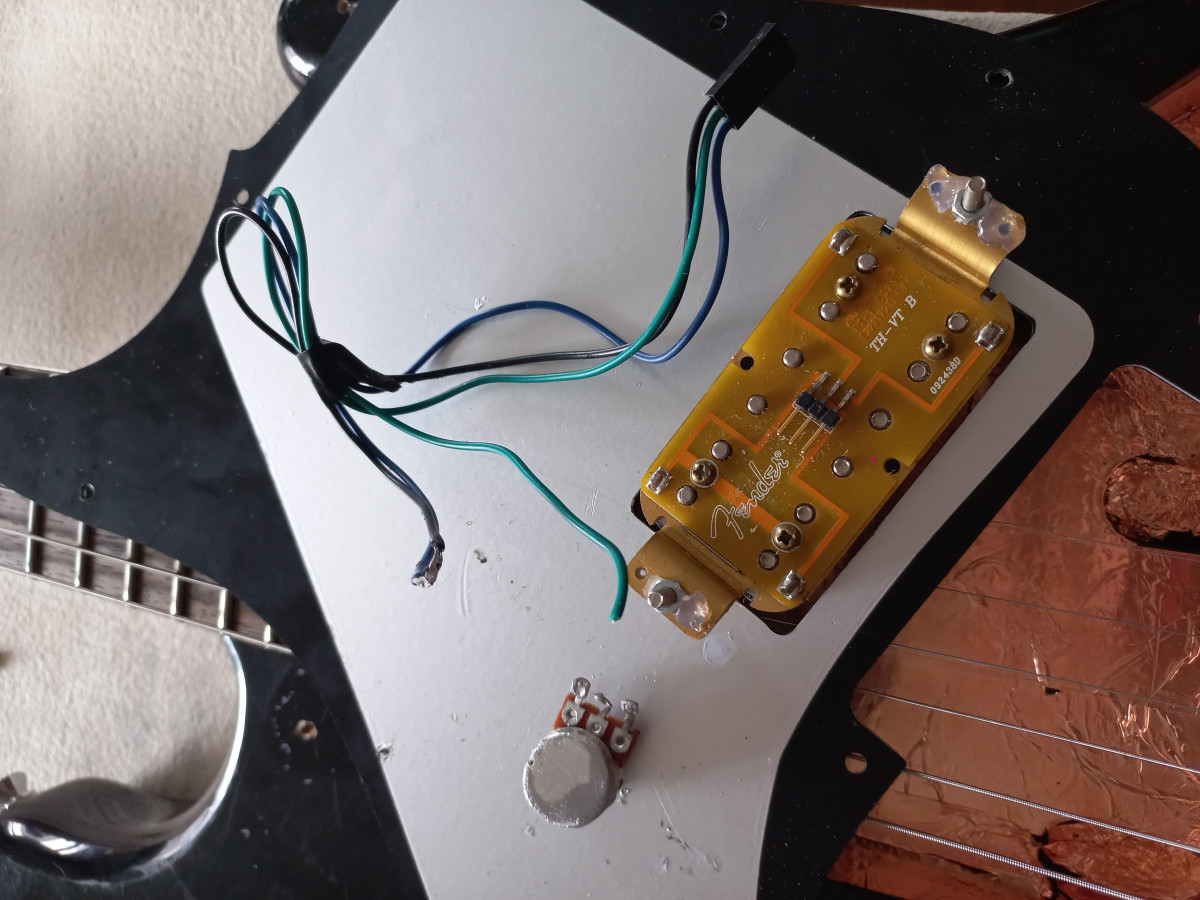 Je bricole un vieille strat équipée d'un unique humbucker Fender TwinHead vintage et d'un potard de volume.