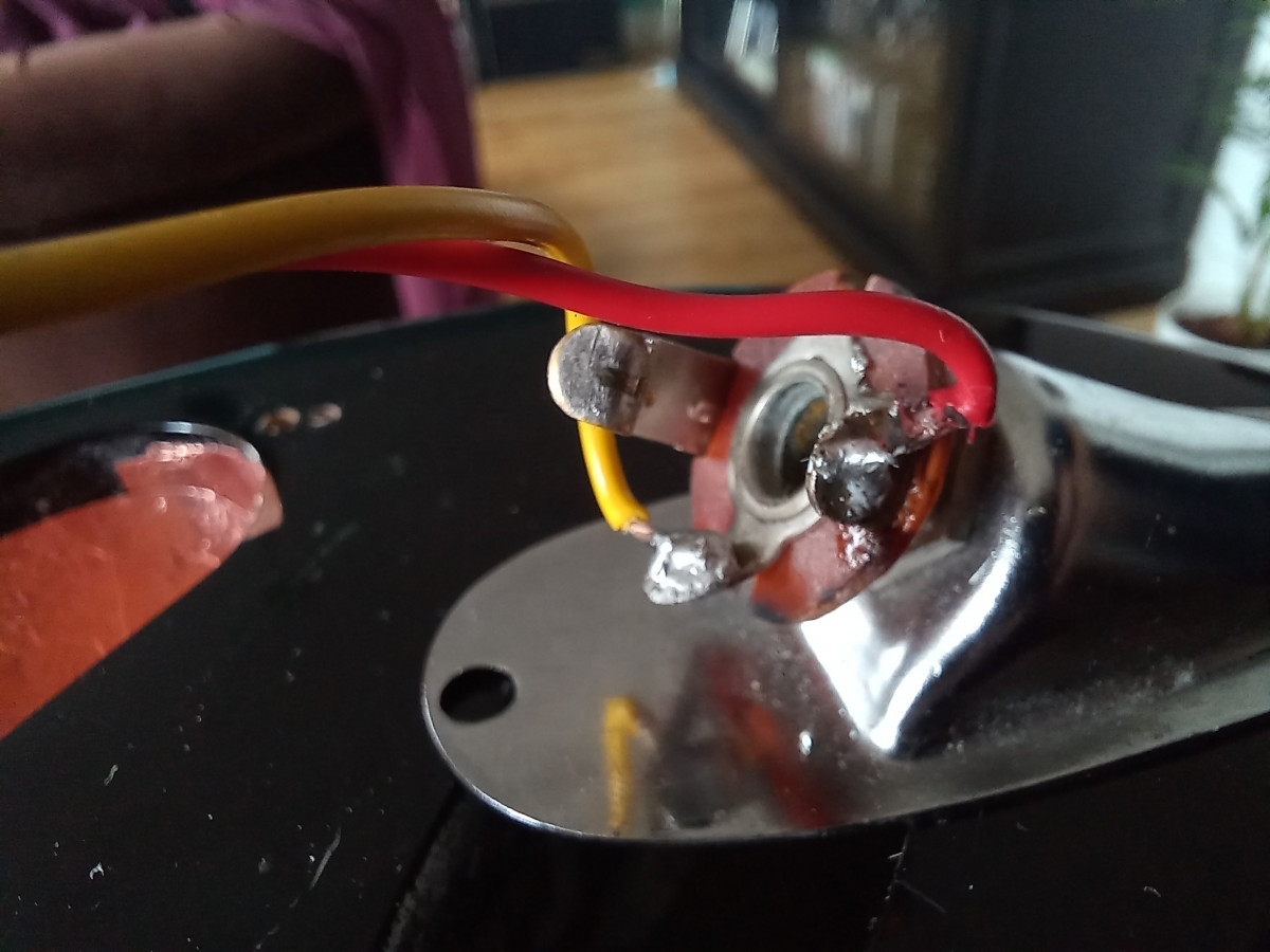 - Fil rouge du jack à raccorder à l'une des extrémités du potard ? Celle du milieu ?