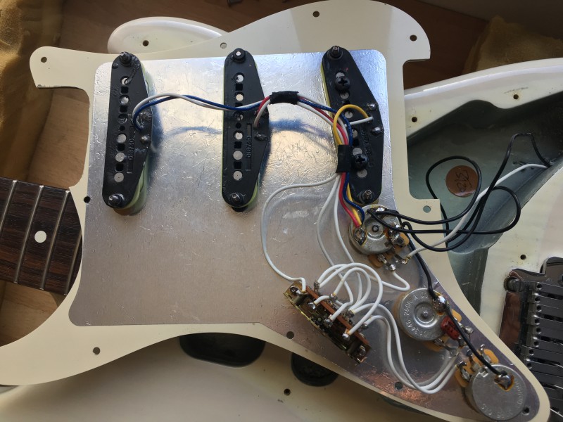 Je n'exclue pas le pickguard ( la plaque) qui peut peut-être affecter le son.Je n'ai par contre aucune preuve