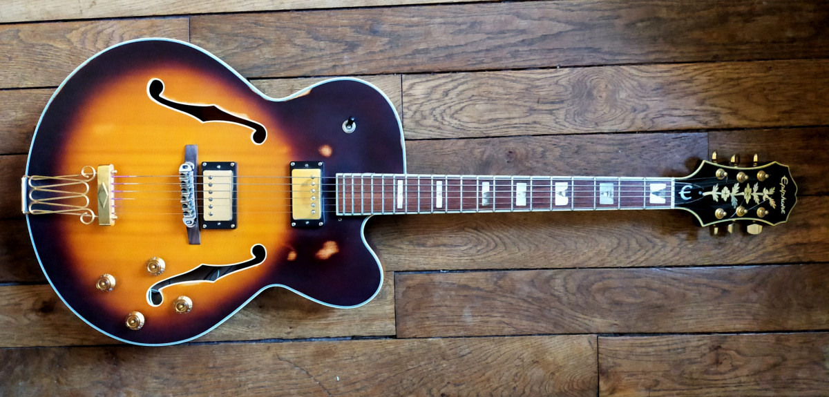 J'ai acquis récemment une Epiphone Emperor MIK, déjà pas mal modifiée mais surtout l'ancien propriétaire a commencé à la poncer partiellement pour le corps, mais pas le manche.