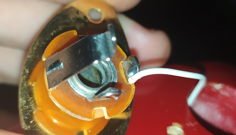 Comme on le voit, le fil blanc est bien soudé mais on voit un fil noir au fond. Cela peut paraître débile, mais je voudrais pas souder n'importe quoi n'importe où, faut-il le souder "comme le blanc" ? (à côté du blanc ou sur une partie métallique)