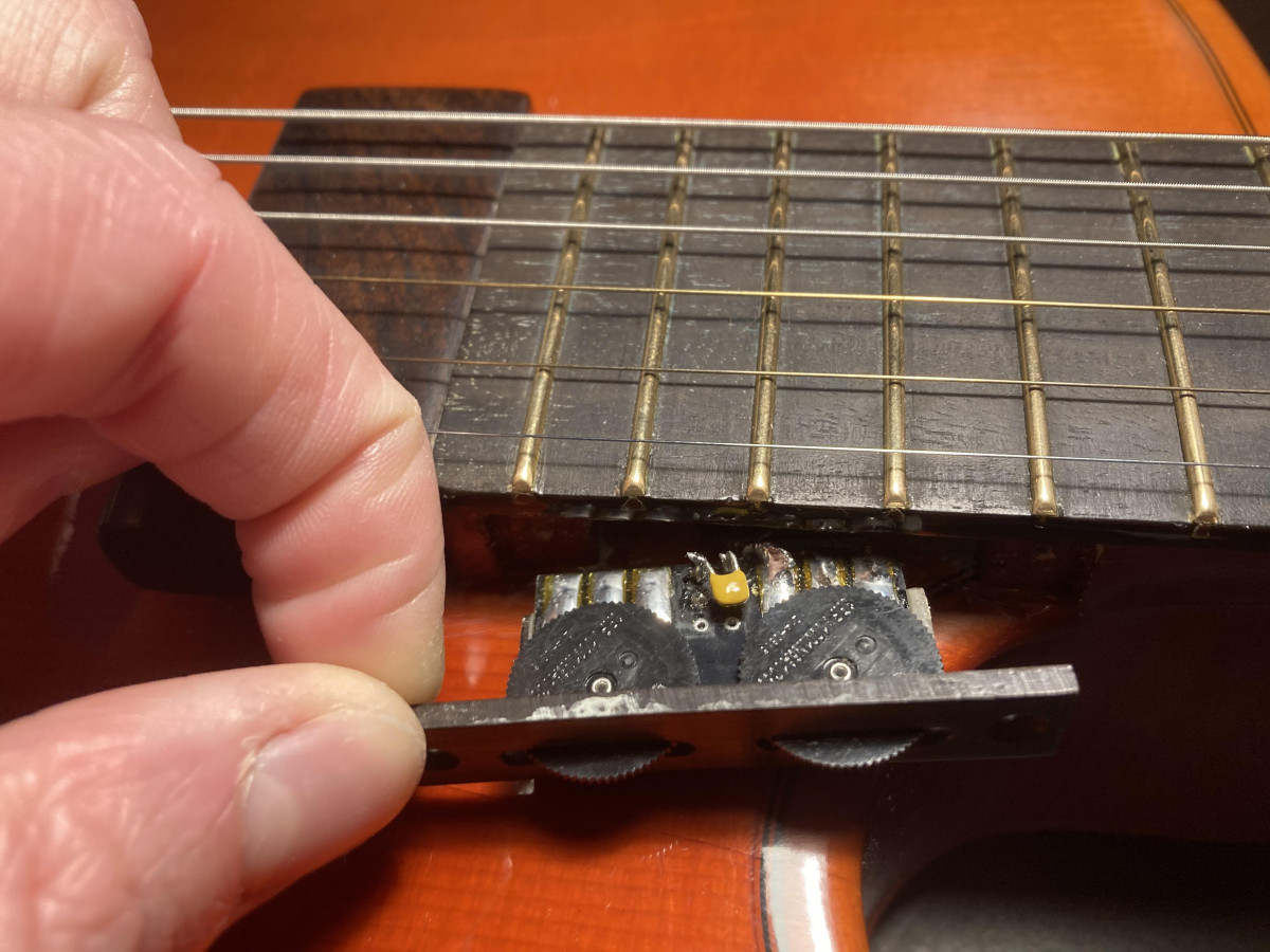 Le claquement quand je viens toucher les cordes (guitare posée ailleurs) me fait quand même penser que c'est un problème de masse, et une espèce d'hypersensibilité.