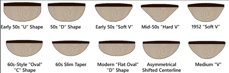 j'ai remarqué en cherchant sur internet articles ,photos des différents profils de manches guitares ( 6 cordes) qu'il y avait par exemple plusieurs profils en C ou D