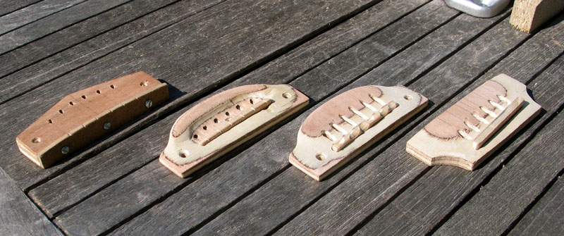 Mon plan est d'en réaliser un final sur ce dernier modèle dans une essence non encore déterminée avec un sillet amovible en diagonal d'au moins cinq millimètres d'épaisseur. J'ajusterai l'intonation et l'action une bonne fois pour toute en effectuant une compensation lors de la taille du sillet quitte à en tailler plusieurs avant d'arriver au bon réglage.