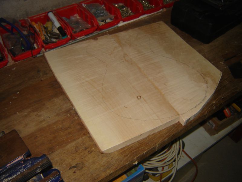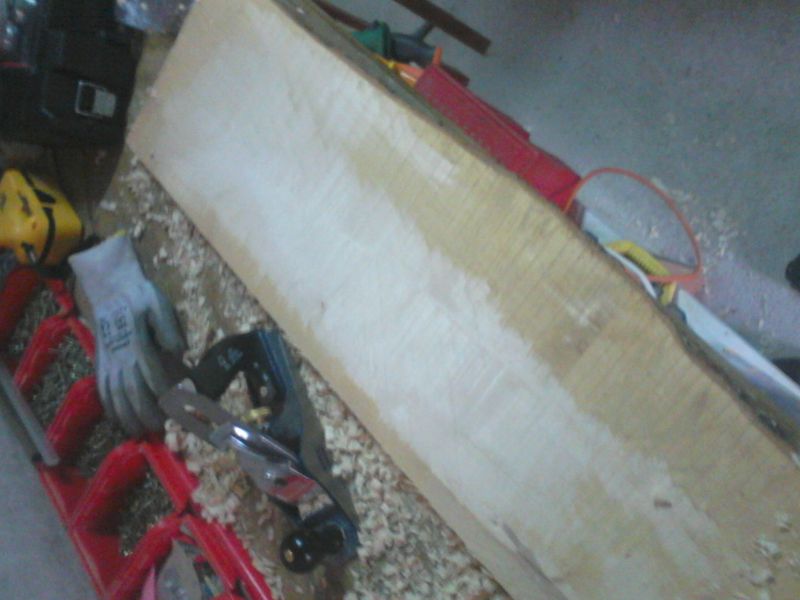 Une planche d'a peu près 20mm d'érable, une planche de Noyer d'environ 40mm d'épaisseur et de quoi faire un ou deux manche en érable.