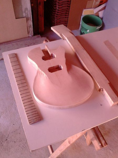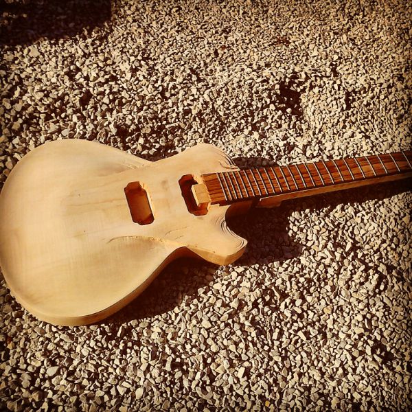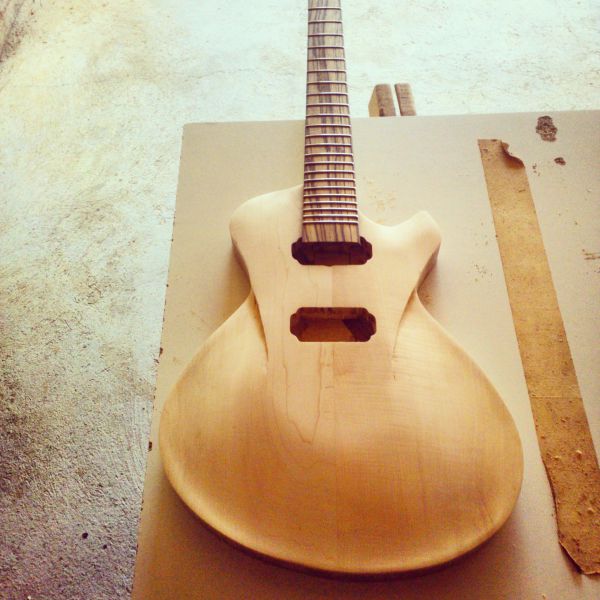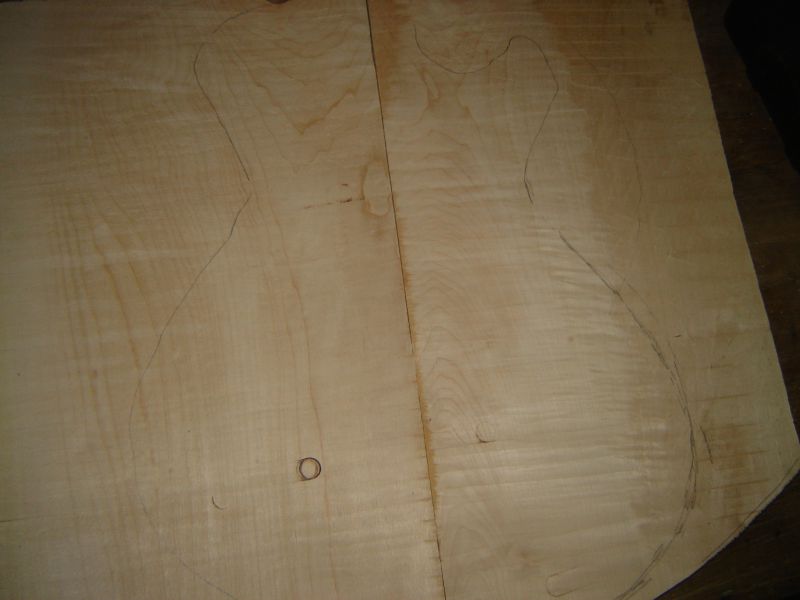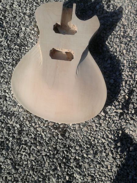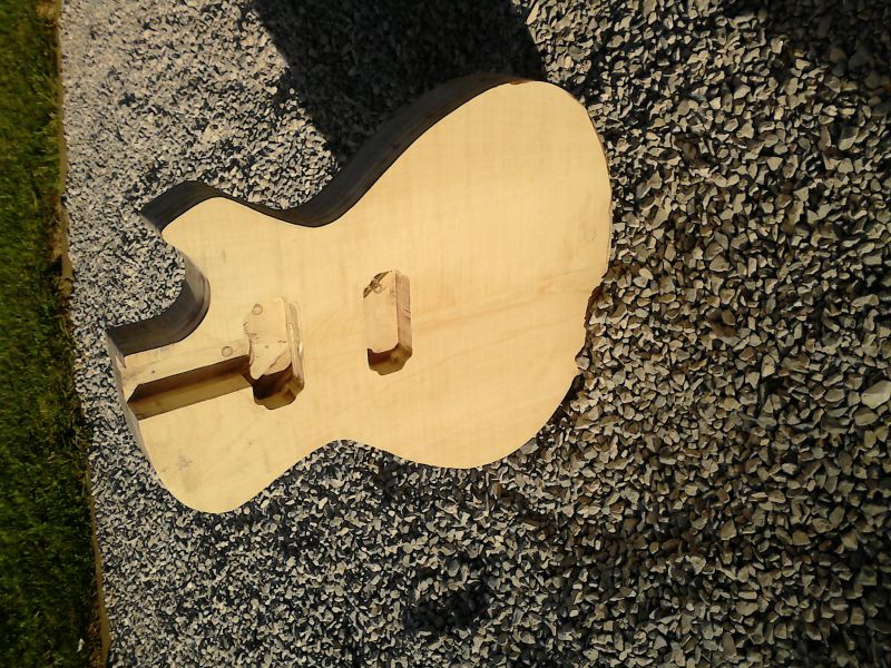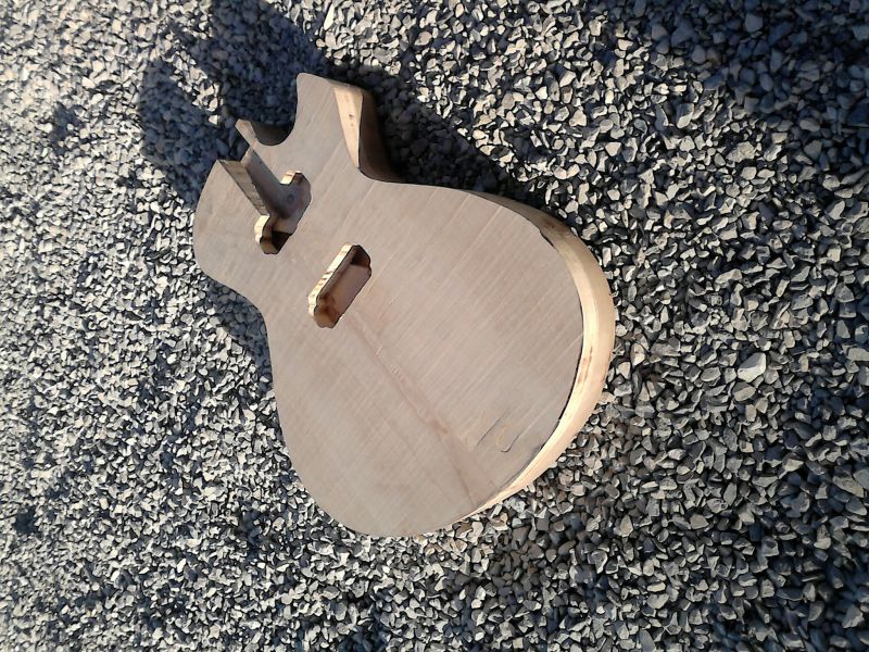 Le corps sera en noyer d'une seule pièce avec une table érable deux pièces non bookmatched.