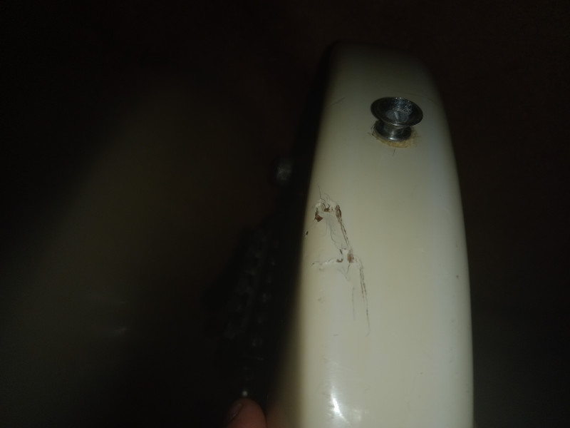 Évidemment elle a pas mal de soucis : Elle a déjà eu le droit à un nettoyage complet, la touche était encrassé de je sais pas quoi mais.. quelque chose de tenace. Elle n'a plus de micro en chevalet, l'électronique est un peu fatigué ( après changement du Jack ça fonctionne, mais variation du niveau de sortie, je sais pas trop à quoi c'est dû mais dans le doute je vais tout refaire )