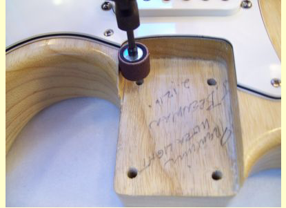 Donc il FAUT raboter symétriquement le neck pocket, et SURTOUT c'est une opération qui ne tolère aucune approximation. Et ne pas oublier que le repositionnement du manche dans le neck pocket et le perçage des trous des vis de fixation sont aussi des opérations qui demandent beaucoup de soin.