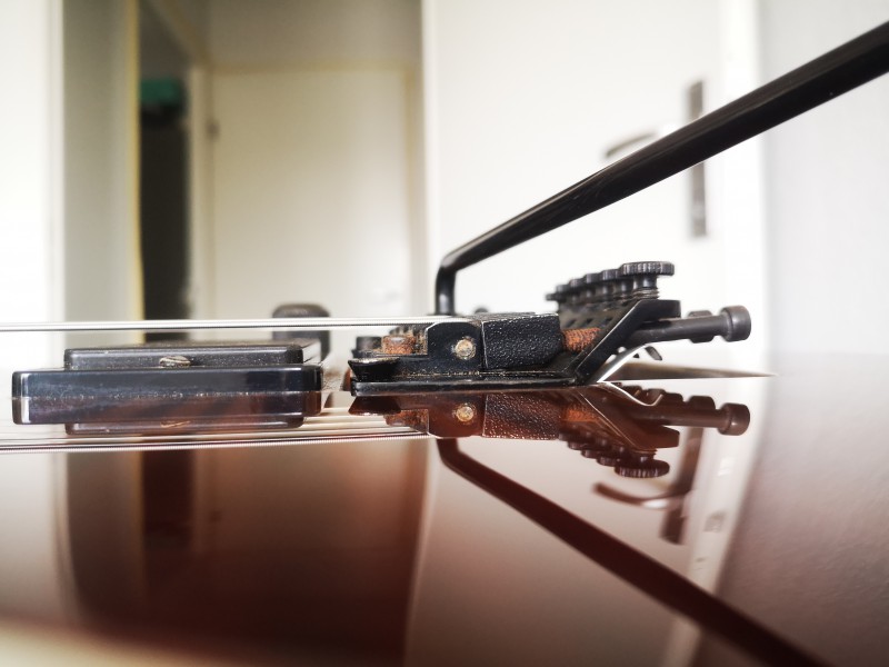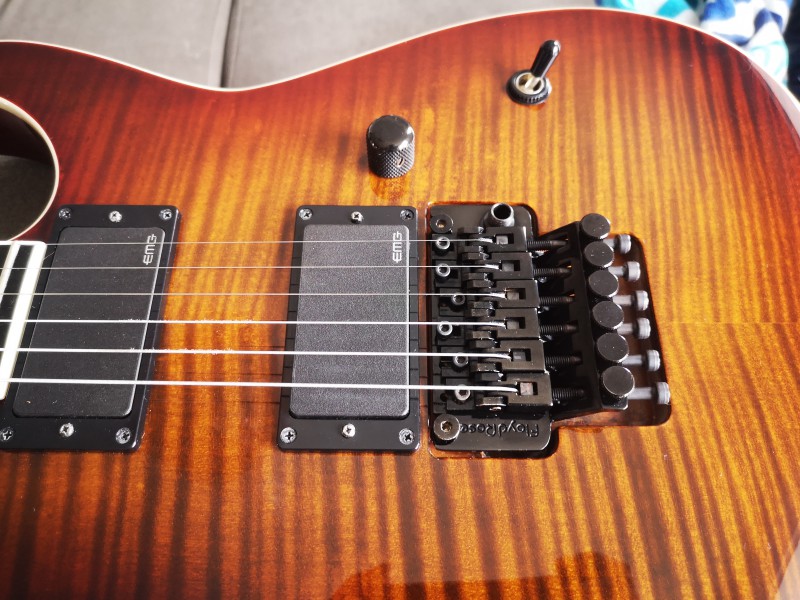 Et pour le manche je compte faire un demi tour dans un premier temps, j'ai l'habitude de régler mon Floyd, ça sera pas un problème si il se lève, et je réglerais les pontets une fois que tout aura finit de travailler.