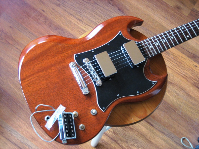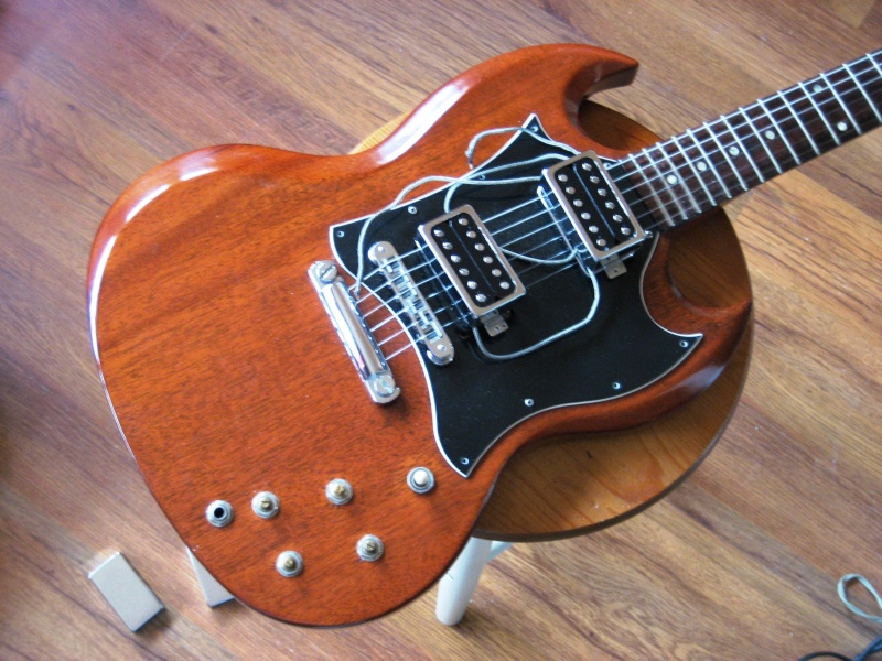 Ca fait un moment que j' ai cette SG Special, elle mérite une remise en état clean de chez clean. Pour commencer je vais lui monter un set de Seymour Duncan. Voilà, j' hésite pour les capots, j' ai ces 2 modèles sous la main. Si vous pouvez m' aider à me décider n' hésitez pas