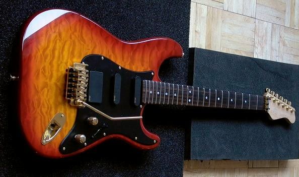 Ensuite, fabrication de la prothèse à partir d'un bout d'ébène proche de la touche d'origine (pas oublier le passage du Trus.. le massacre précédent était par endroit en dessous du haut du trus..)