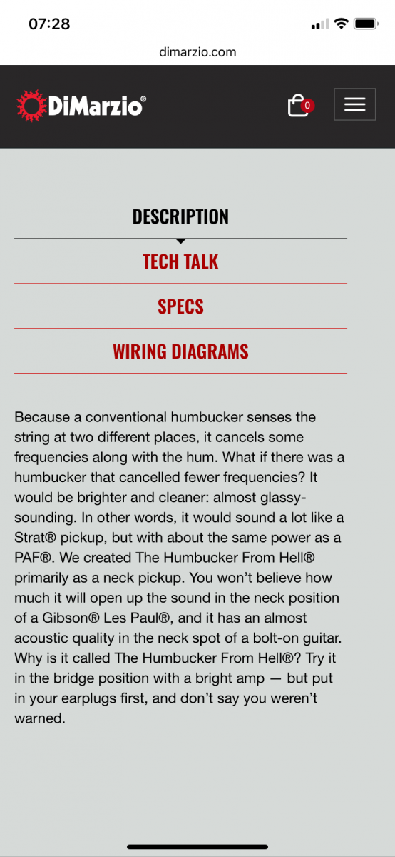 Di Marzio proposait (et je crois que c’est toujours le cas), le fameux, je cite « humbucker from hell « , qui contrairement à son terrible nom, sonne comme un simple bobinage, tout en gardant son format.