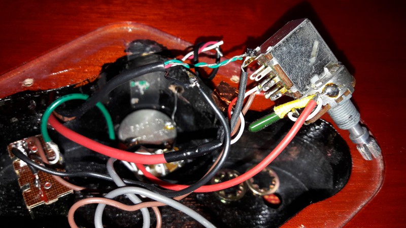 En tout cas, j'ai câblé comme conseillé dans ce fil: Vert à la masse, Rouge-Blanc ensemble au push & pull et Noir (point chaud) au sélecteur. Et contre toute attente (néophyte total en câblage et brasure) eh ben... ça marche! Et ça sonne plutôt très bien! J'ai gagné de la patate et pas mal de précision dans le son, ça a vraiment l'air plutôt cool! Il y a juste un petit problème de sur-saturation sur le micro neck quand je pousse le gain de mon ampli au-delà de 14h avec volume de la guitare à fond, mais c'est probablement une histoire de réglage de hauteur.
