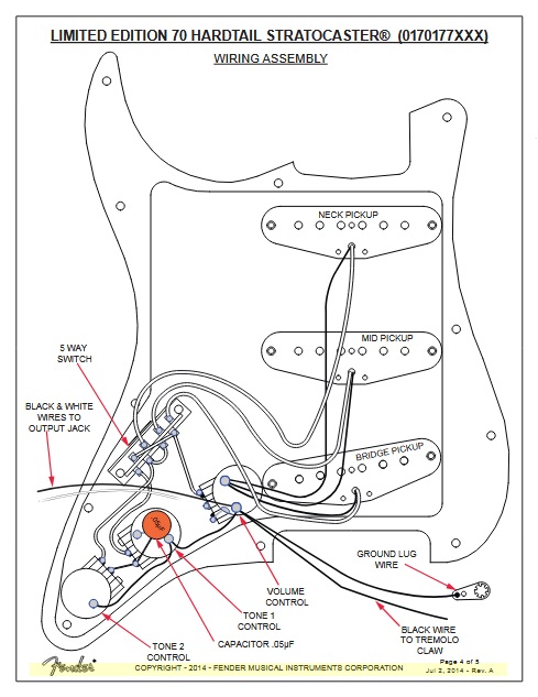 Bref, je démonte tout. Je change les micros, je change le sélecteur, je mets le condensateur, je remonte le tout selon un plan que j'ai trouvé sur le net.