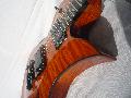 Coprs en acajou, table en érable ondé sculptée, manche en érable ondé, touche ébène.