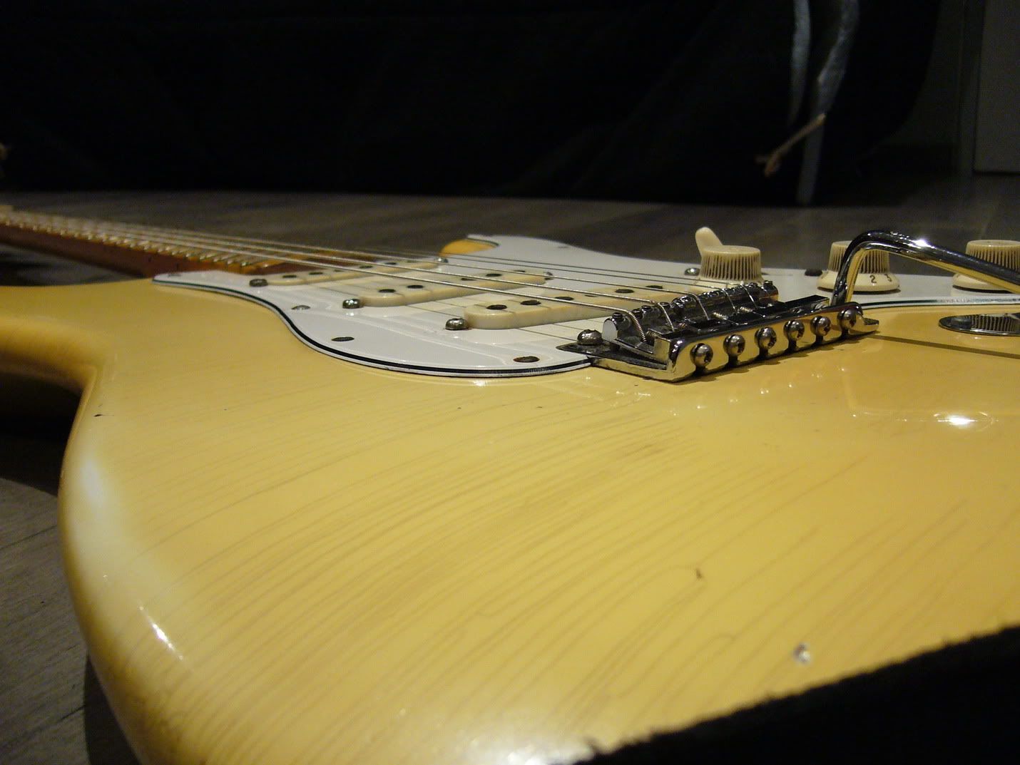 Voilà j'ai une Squier Stratocaster "fat strat" depuis début janvier, avec un vibrato "flottant" un peu comme ici :