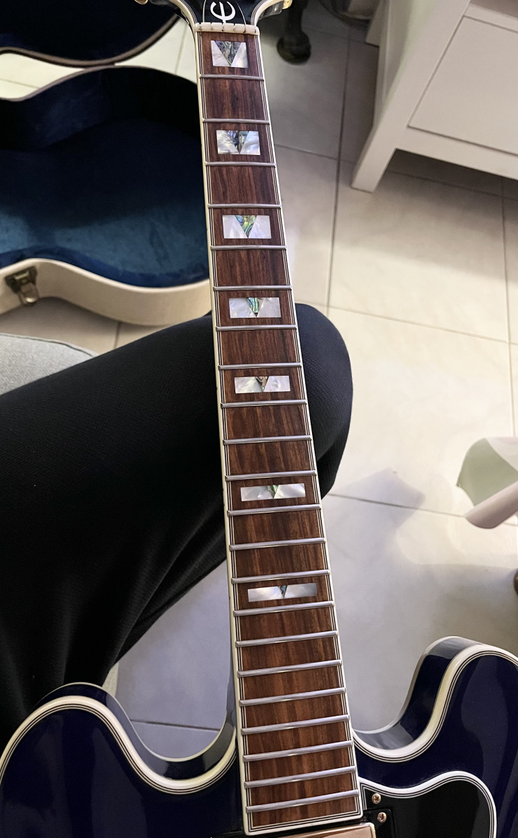 Par contre, la touche sera vraiment noire comme du palissandre ensuite et ne laisse pas de taches sur les doigts.