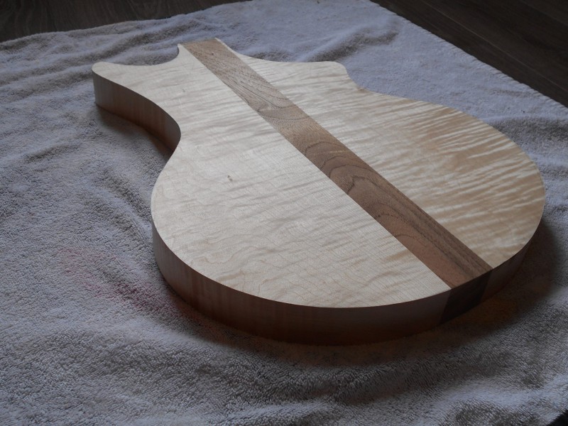 J'en sais pas plus sur le bois, je l'ai acheté chez "Bois de lutherie" à côté de chez moi. Pour ce qui est du design, je me suis inspiré des mandolines Gibson F G5... Je me suis aperçu par la suite que la Brian May avait presque la même forme