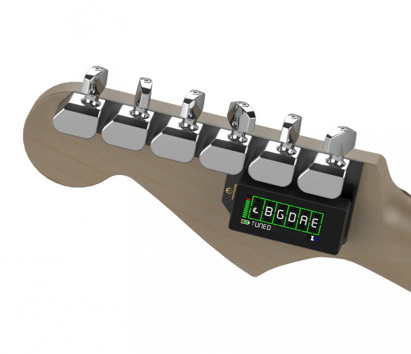 Le système est totalement transparent et promet de pouvoir équiper plusieurs guitares avec un seul tuner; il suffirait d'acheter le PCB et les clés. Fini l’électronique trop visible au dos du manche, c'est tout petit et on peut l'enlever. J’imagine l'avantage sur scène : Un seul tuner qui se colle à la gratte qui a attendu sur son pied. Une seule pression, on est sûr d'être parfaitement accordé en un seconde ou deux.