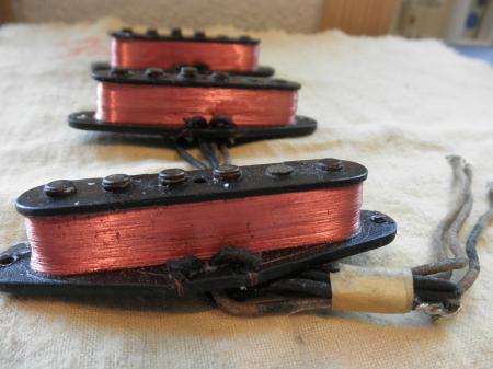 Ça ressemble fortement a un set Strat 54 (1ere année de fabrication de la Strat). Ce set est en Alnico 3, les aimants sont étagés différemment des micros Strat habituels (a partir de 1955).