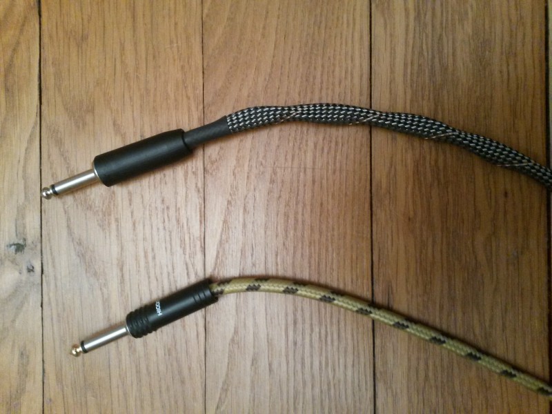 Le meilleur Elixir et ses fiches dorées à l'or fin, qui ne se fabrique plus aujourd'hui en raison de son prix exorbitant, puis le Orange fiche Neutrik, le Roland Professional, le Planet Waves fiches Neutrik, et enfin, en dernier et d'une qualité très médiocre, le câble Fender Custom Shop, revêtement tissus noir et blanc, cordon livré avec ma guitare Custom.