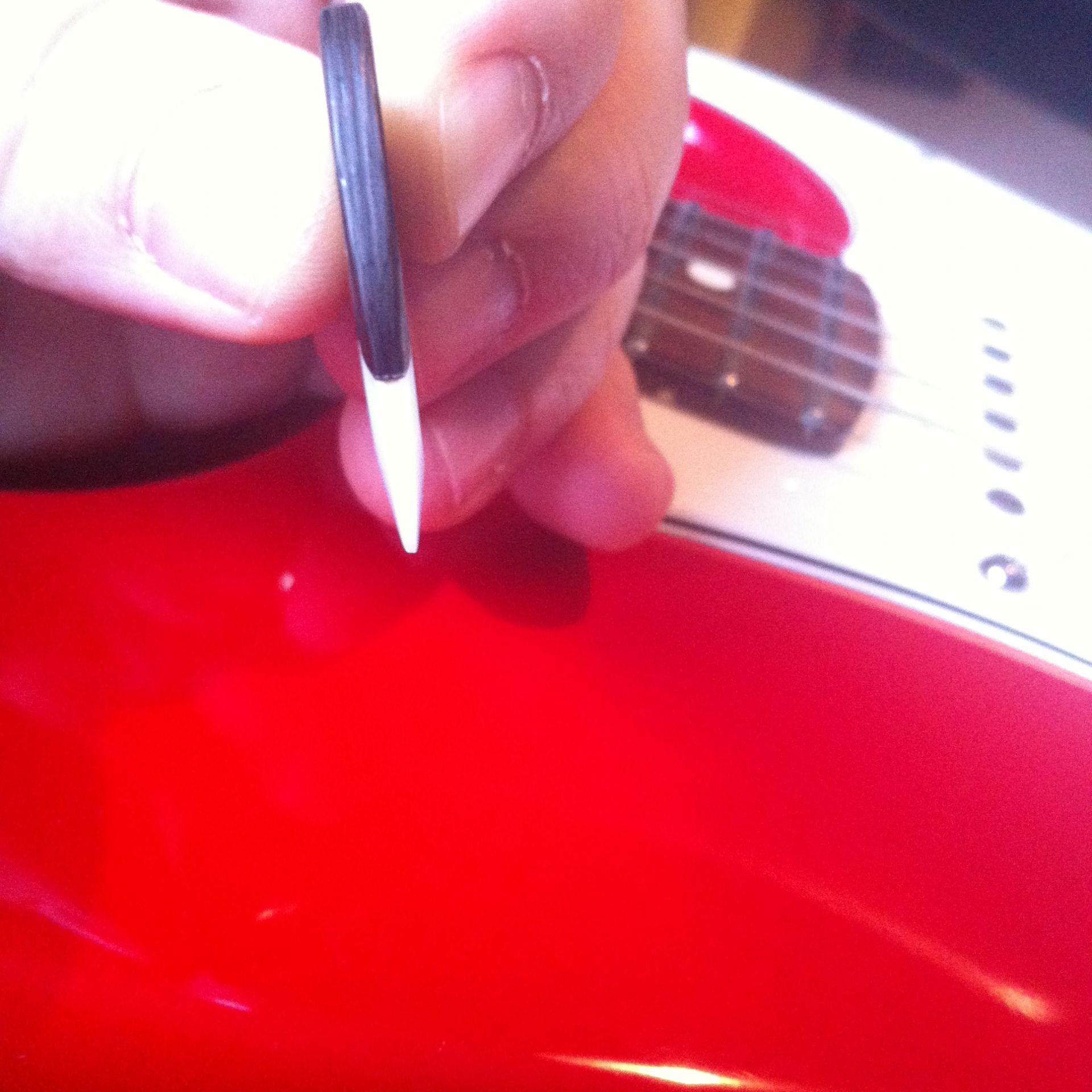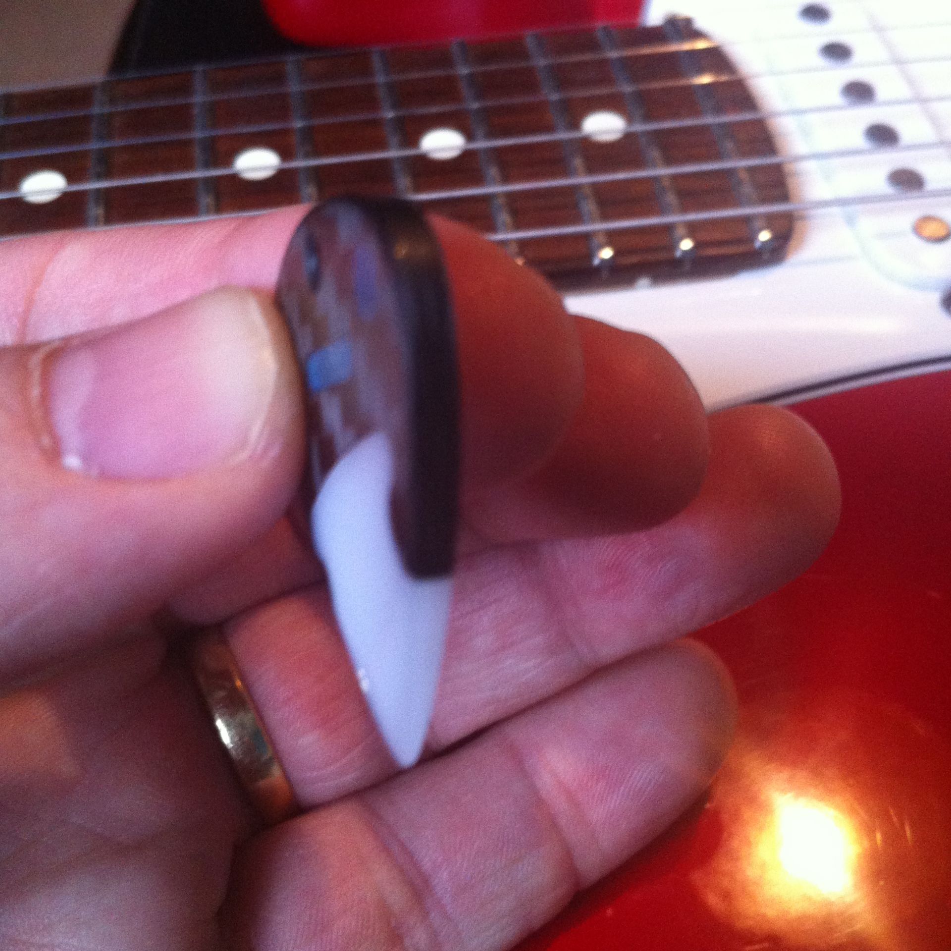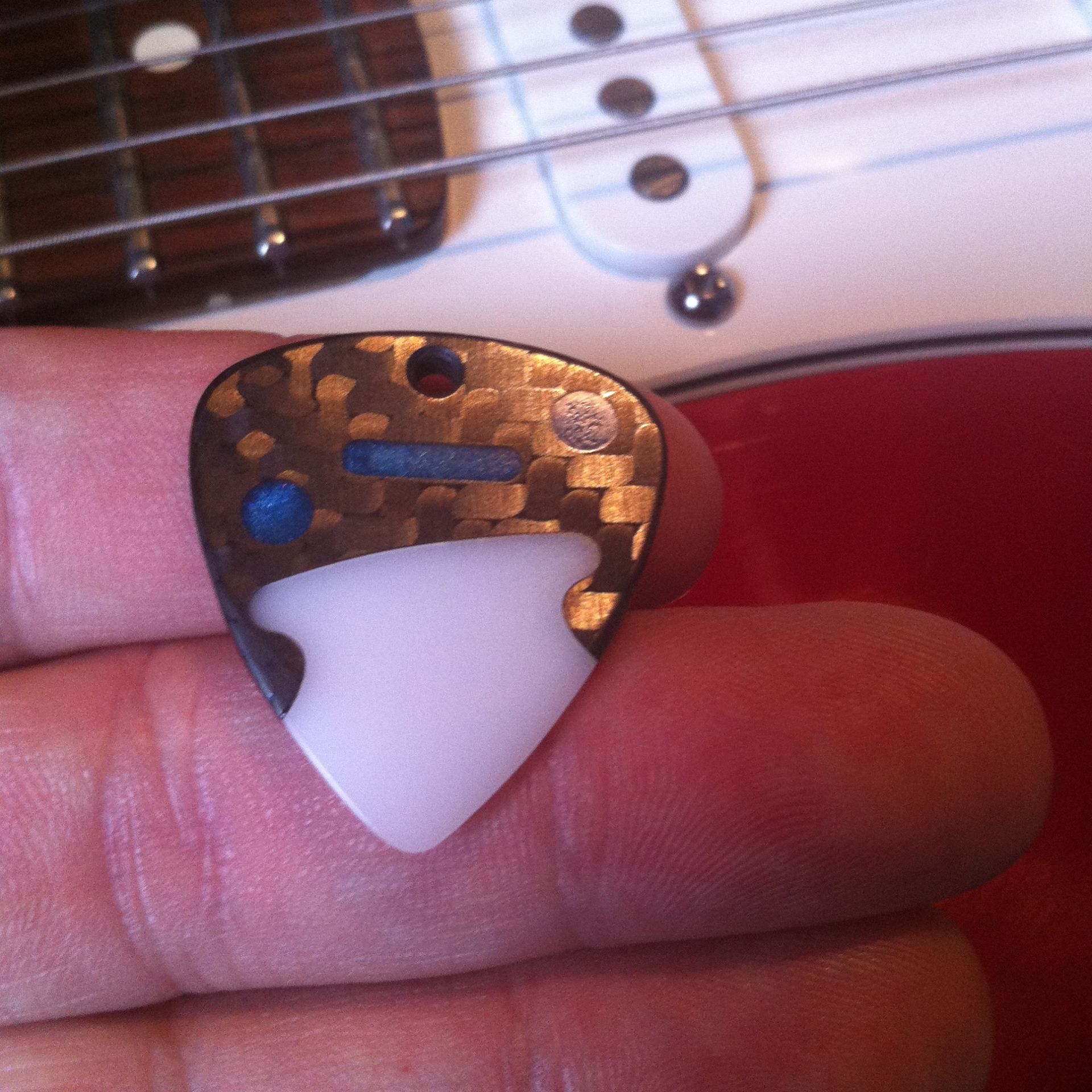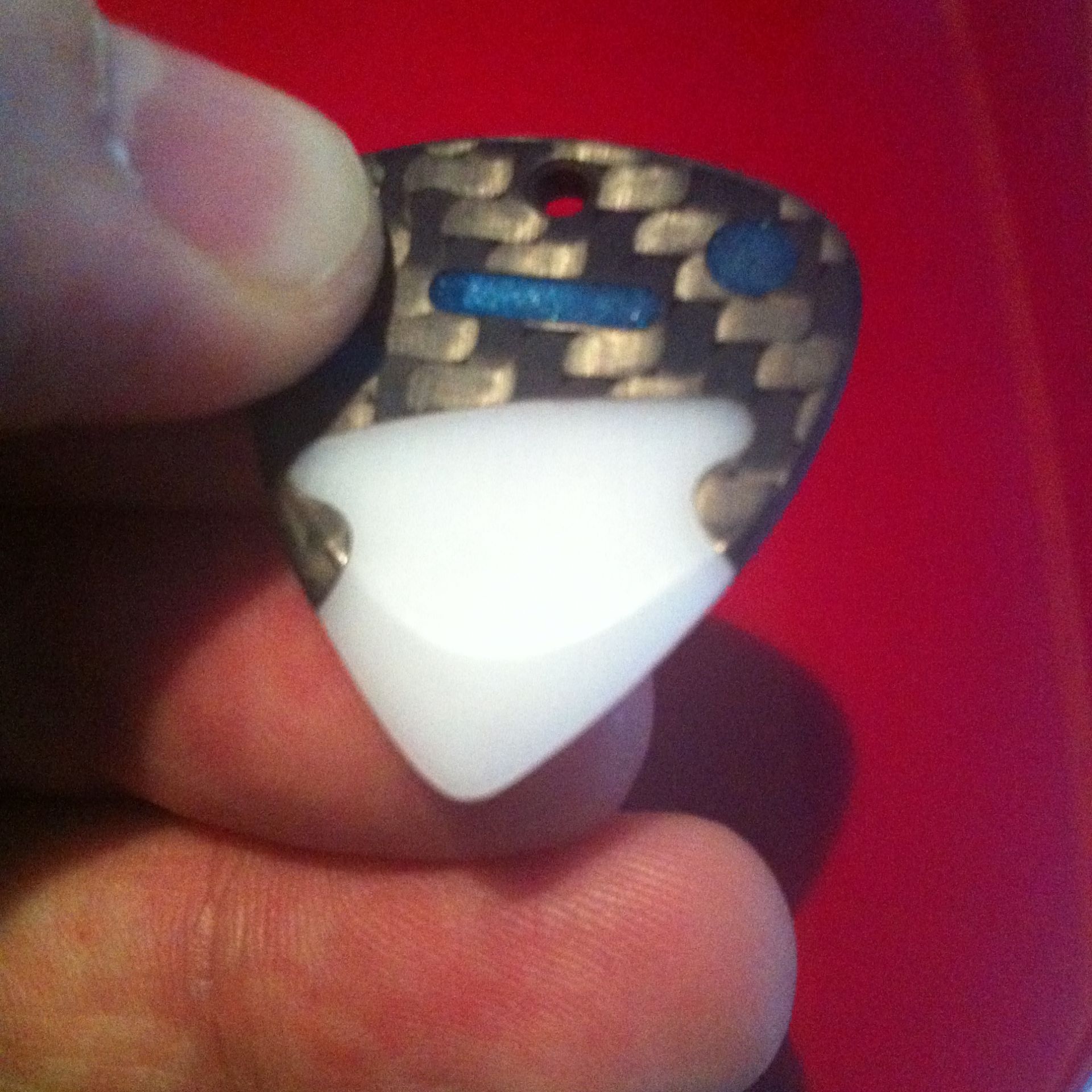 Encore un mini trou dans le haut du plectre pour vous savez quoi maintenant ;0) Il est léger et dur.