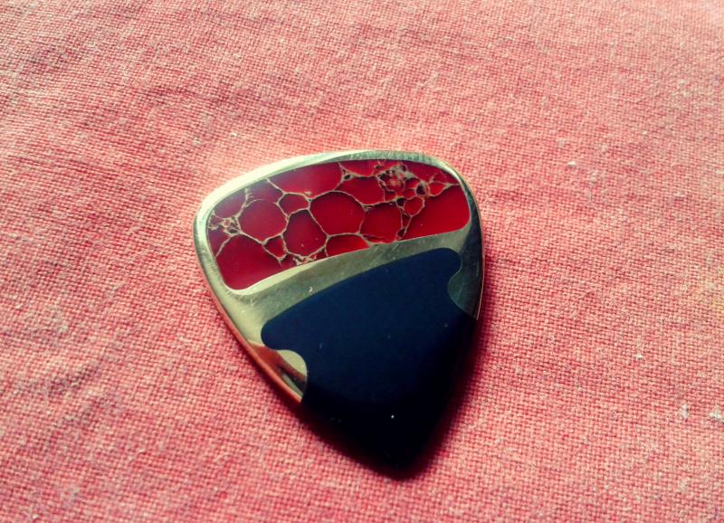 Il a un donc un corps en laiton massif, Riki le Plectrier les propose également avec un corps en alu, en carbone et en titane) il possède donc 3 pointes différentes.