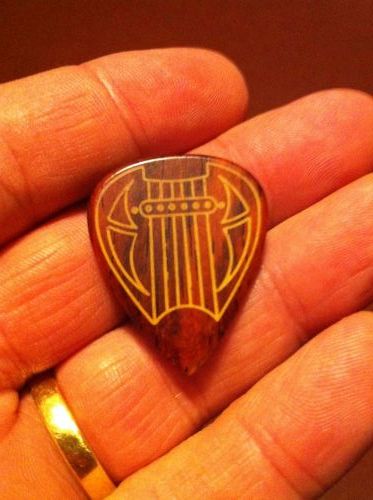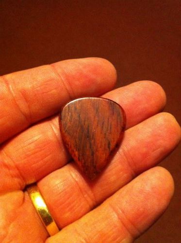 Différents bois sont disponibles, le mien est en Cocobolo, bois qui ressemble visuellement un peu à la touche palissandre de ma guitare mais en un peu plus "rougeoyant", très joli !