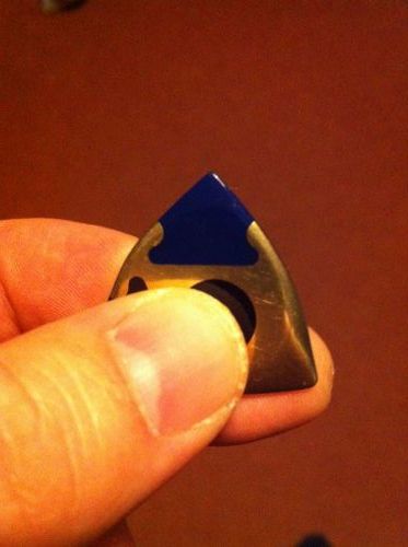 L'esthétique de ce modèle est très réussi, un médiator triangulaire à 3 pointes, un petit côté "bijoux" qui lui va bien, ça fait "classe" et d'aucuns pourraient même avoir peur de lui faire bobo avec leurs grosses mimines pleines de gros doigts.... les grands vilains chevelus de la race des Guitarus Poilus.