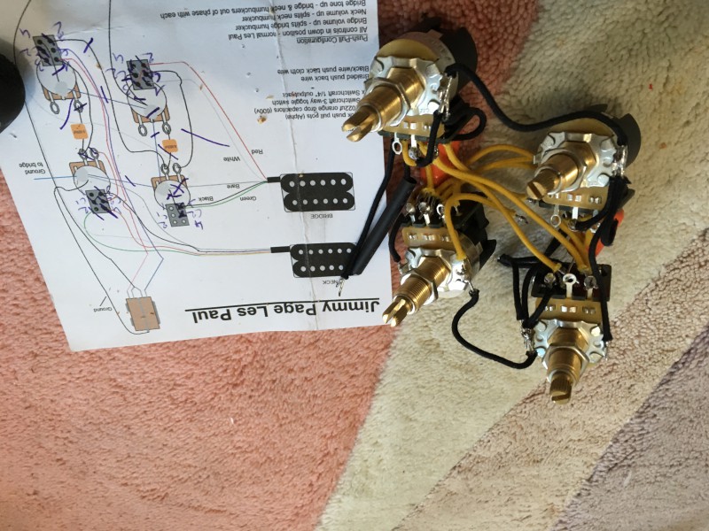 Bon, j'ai refait le câblage de A a Z ce weekend. Et même constat. Sur le swicth j'ai 2 positions qui marchent et qui font fonctionner les 2 PU en même temps, et l'autre position qui ne sort rien ou presque. Et un gros buzz dans tous les sens.