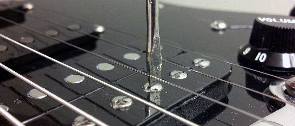 Très près des micros, les cordes subissent le champ magnétique des micros et sont donc amorties et vibrent moins longtemps, d'où moins de sustain