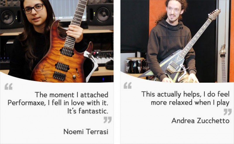 Personnellement, j'ai été directement intéressée par son projet, car je ne joue de la guitare électrique qu'en position assise et je croise toujours la jambe droite (pas bien, pas bien !) ou pose mon pied sur un support afin de "ré-hausser" la guitare, qui me parait toujours trop basse et inconfortable ... (Est-ce que d'autres personnes ici ont ce même "problème" de ressenti ?)