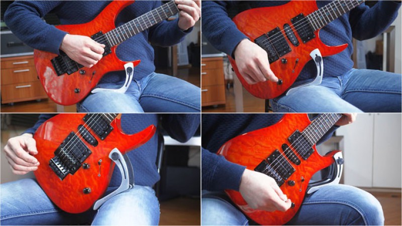 guitare électrique, à la manière des accessoires "Ergoplay", "Gitano" et autres appuis guitares classiques.