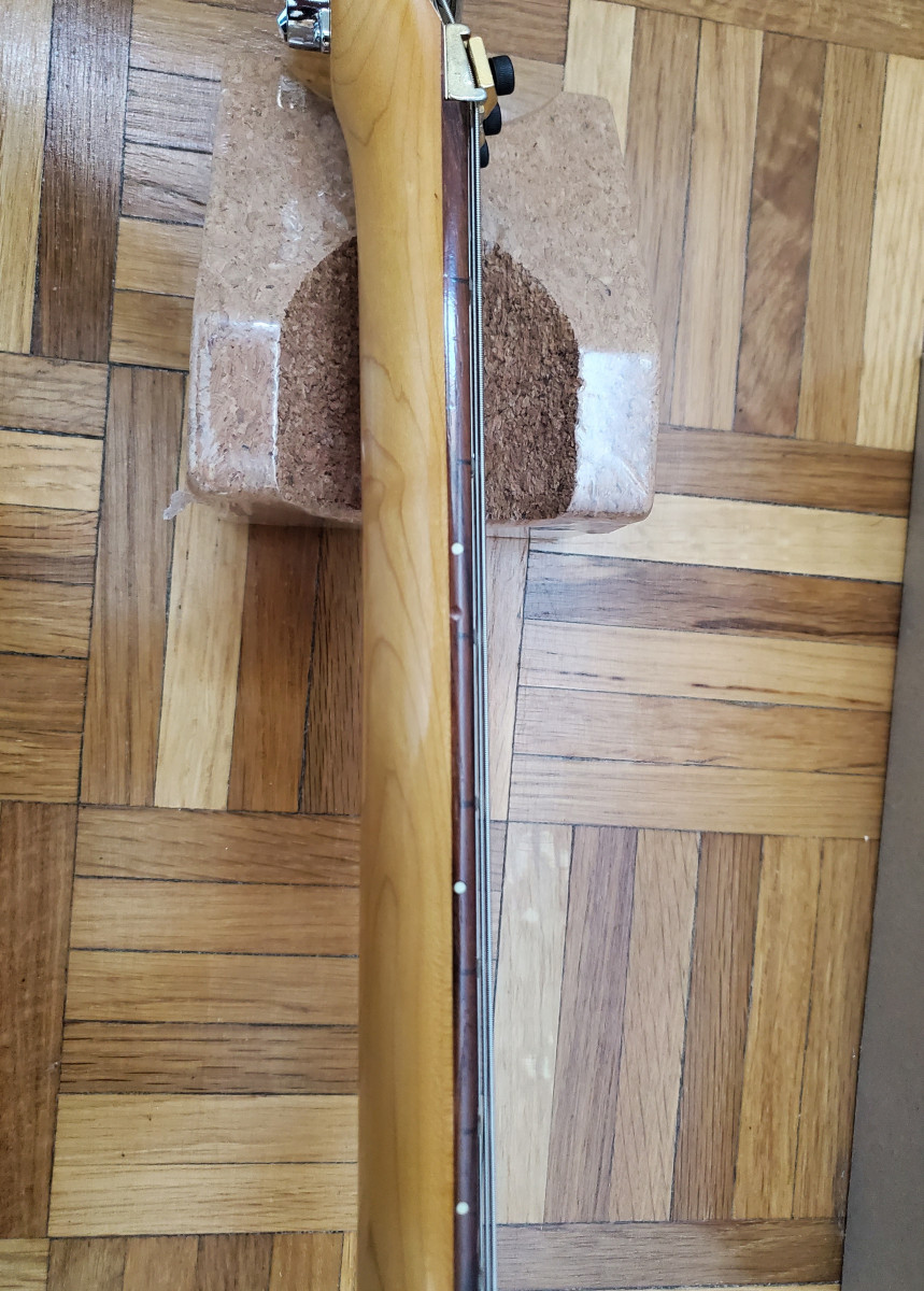 Le manche n'est pas droit, avec une courbure vers l'arrière au niveau de la 5 ème case. Le truss n'y change rien si j'essai d'avoir un manche concave.