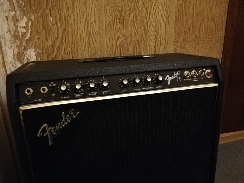 Vends un Fender 75 du début des années 80 (switchable en 15W et 75W). L’ampli est en très bon état et fonctionne parfaitement.