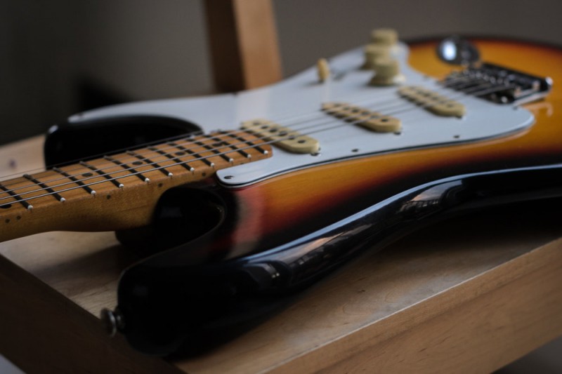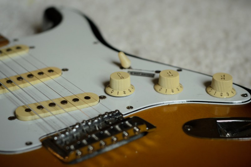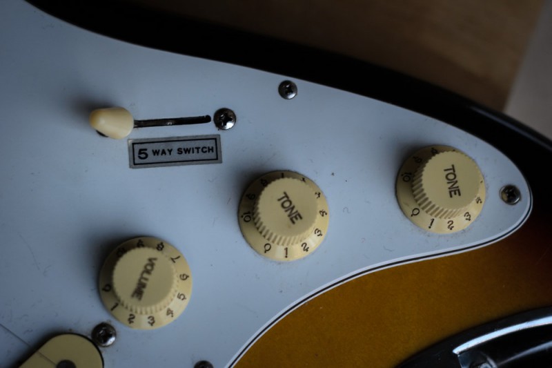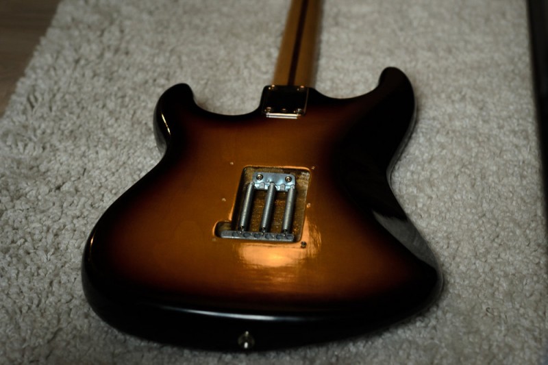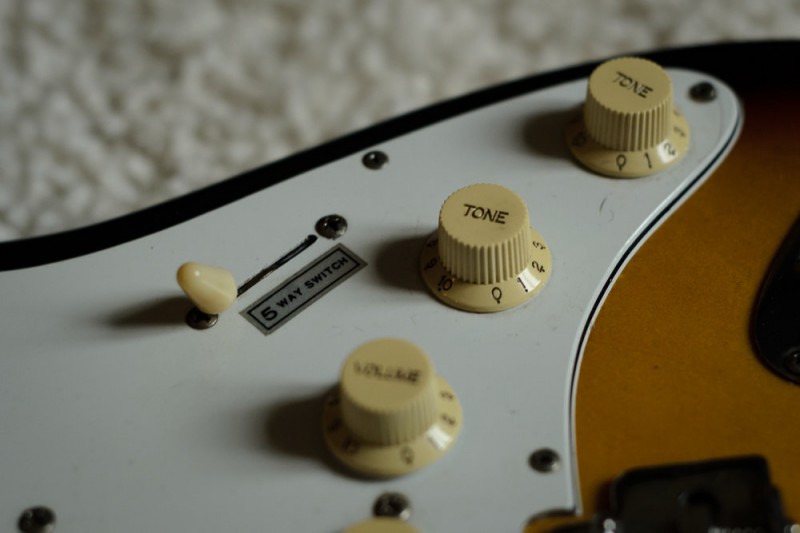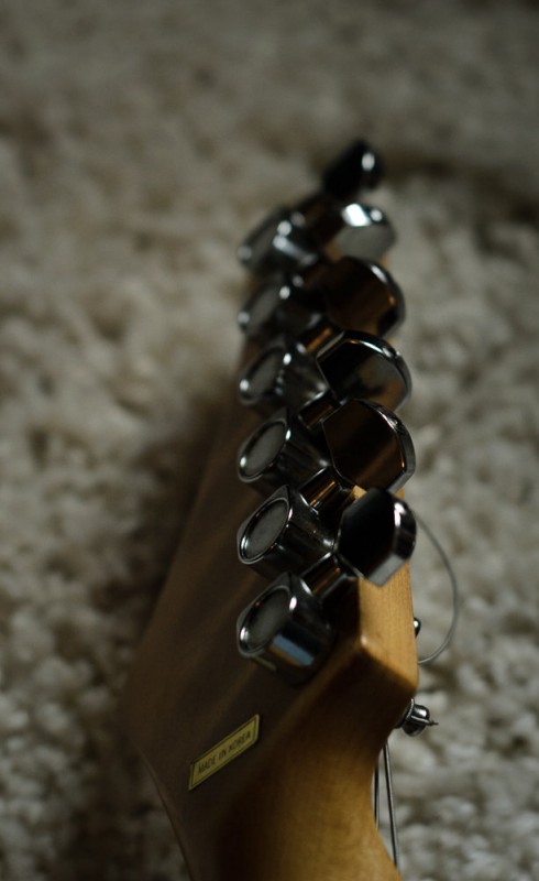 ), son ancien propriétaire ne la jouait jamais selon ses dires, ça ne m'étonne pas...il y a toujours les stickers d'origine "5 way switch" à côté du sélecteur 5 positions, le "made in korea" derrière la tête, et le numéro de série sur le talon du manche. Je lui ai fait un sacré nettoyage/entretien récemment, tout marche impeccable, l'action est basse sans aucun soucis, l'électronique est d'origine japonaise (c'est marqué sous le potard de volume), les mécas sont vraiment très bonnes et pas "cheap" (d'ailleurs elle ne bouge pas !), le tout résonne super bien avec cette "vibe" vintage que personnellement j'adore ! Je possède la plaque de protection arrière (faut juste que je remette la main dessus...), et la tige de vibrato (oubliée de la prendre en photo, oups). Plus d'infos sur demande, n'hésitez pas