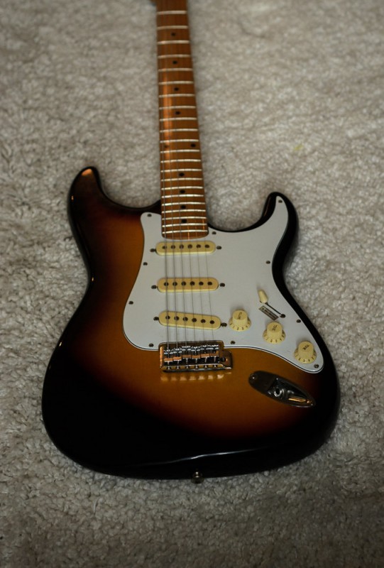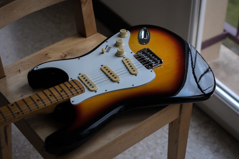 Je mets en vente cette beauté de 1986 (le numéro de série sur le talon débute par 86), faite en Corée : une Hohner ST Special ! Son état est excellent, le manche est sublime (et en superbe état également, un des meilleurs manches que j'ai pu jouer même si ça ne reste que subjectif évidemment