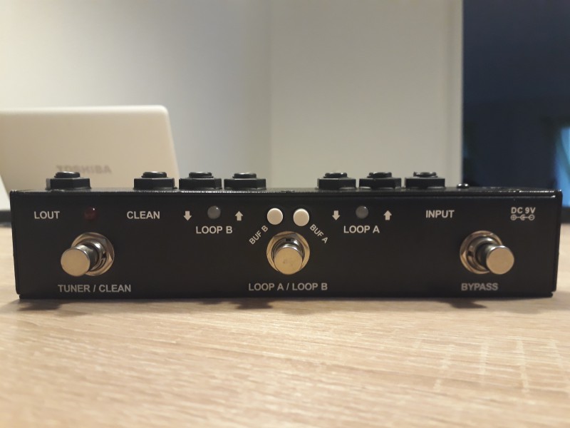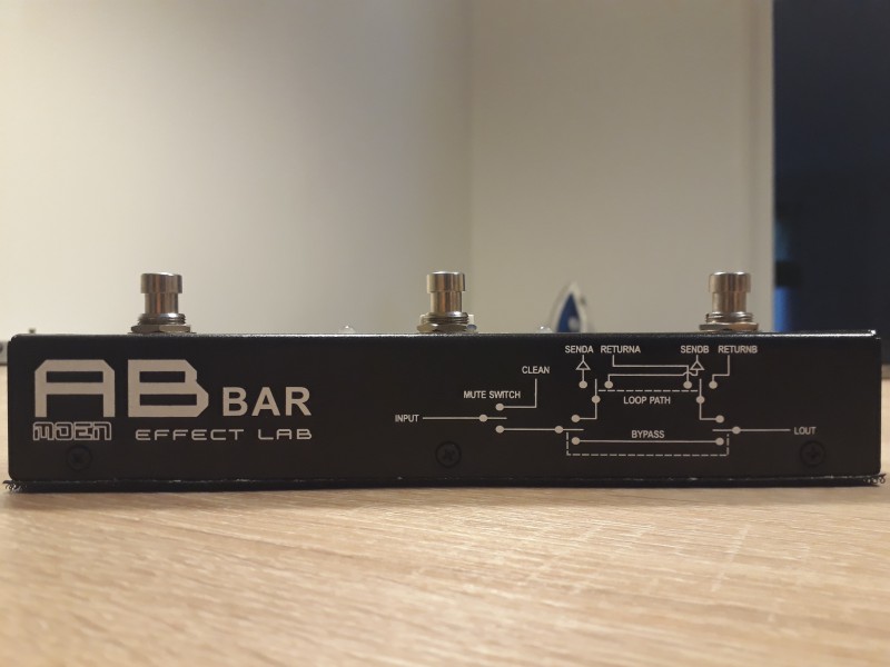 La barre Switch A/B de Moen est un vrai commutateur permettant simplement de basculer entre deux boucles d’effet, avec la possibilité d’activer un buffer sur chacune d’entre elles.Il permet par exemple de connecter de vieille pédales dépourvues de réel by pass ..ou de créer sur un monocanal une boucle GAIN et une autre en clean (c’était mon cas) Sa taille minuscule permet de s’intégrer facilement sur n’importe quel pédalboard.