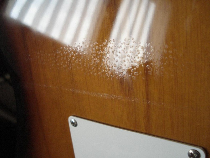 La guitare est en bon état général, seul le vernis nitro a fait un réaction au contact de quelque chose sur le dos de la guitare (je ne saurais dire d'où ça vient, j'avais acheté la guitare comme ça).