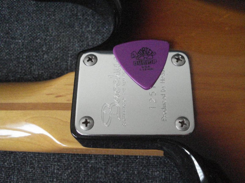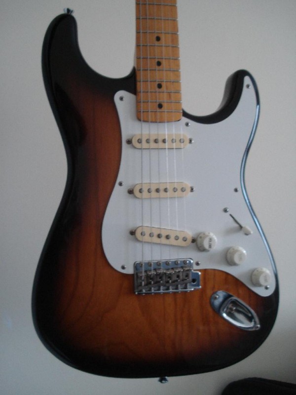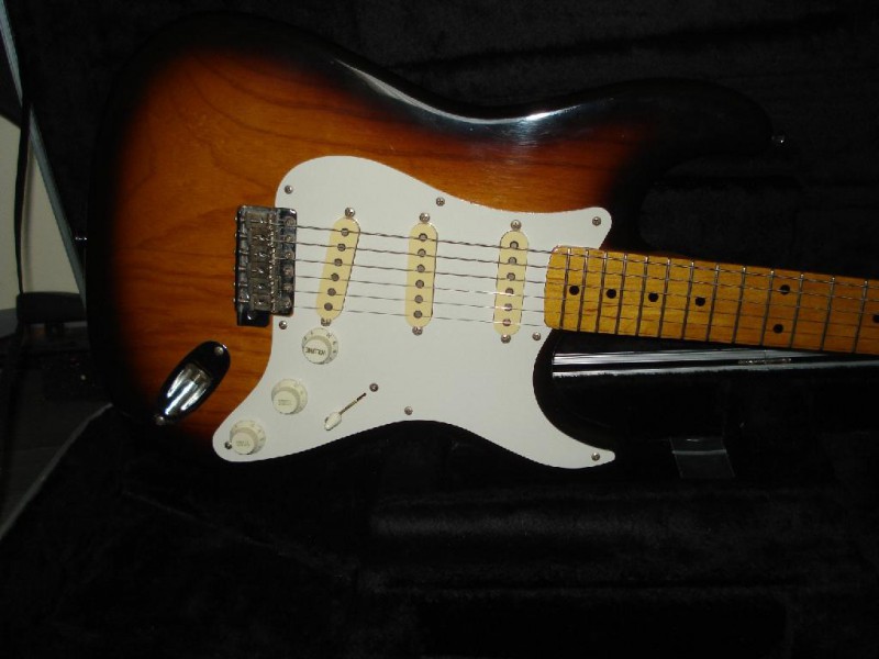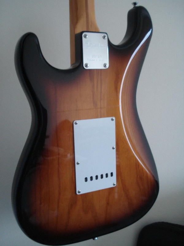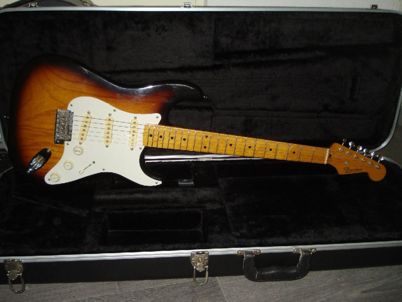 La guitare est assez légère (Lightweight Ash comme indiqué dans le catalogue) et n'a subit aucune modification, tout est d'origine. Il manque juste la tige de vibrato (mais vous pouvez en acheter une, c'est une Gotoh).