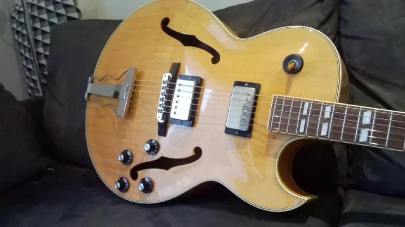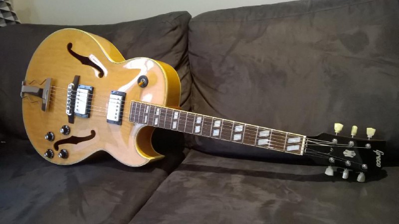 Cette guitare a été fabriquée chez Fujigen Gakki en décembre 1990 et est une réplique de la célèbre Gibson ES175.