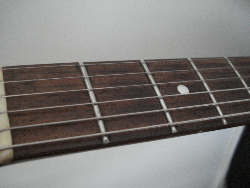 La guitare est en état esthétique assez moyen, elle a de nombreux accrocs et rayures sur le corps et la tranche, les frettes ont encore de la vie mais ne sont pas neuves (7/10).