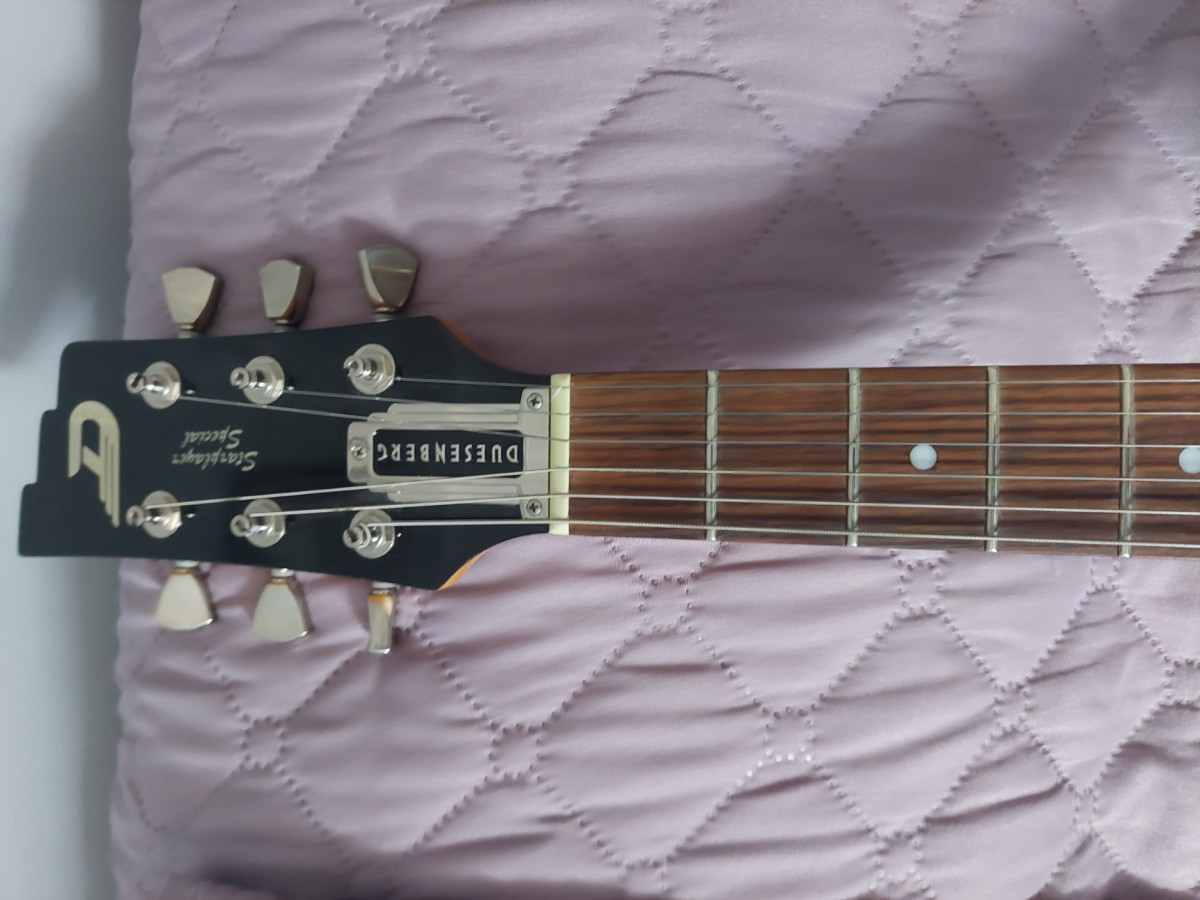 Achetee neuve (B stock) chez Andertons en 2018. Tout originale, des traces de jeu, mais en excellent etat, une petite trace/ rayure sur le dos, qui ne se voit presque pas a la photo. Une bonne guitare, objectivement, achetee sur un caprice, mais qui n'a jamais trouve son repertoire avec moi, je ne sais pas quoi jouer avec. Important: je n'ai pas la caisse originale, donc elle sera envoyee sans caisse ni housse, amis avec un soiin particulier, en mode 'sarcophage'.
