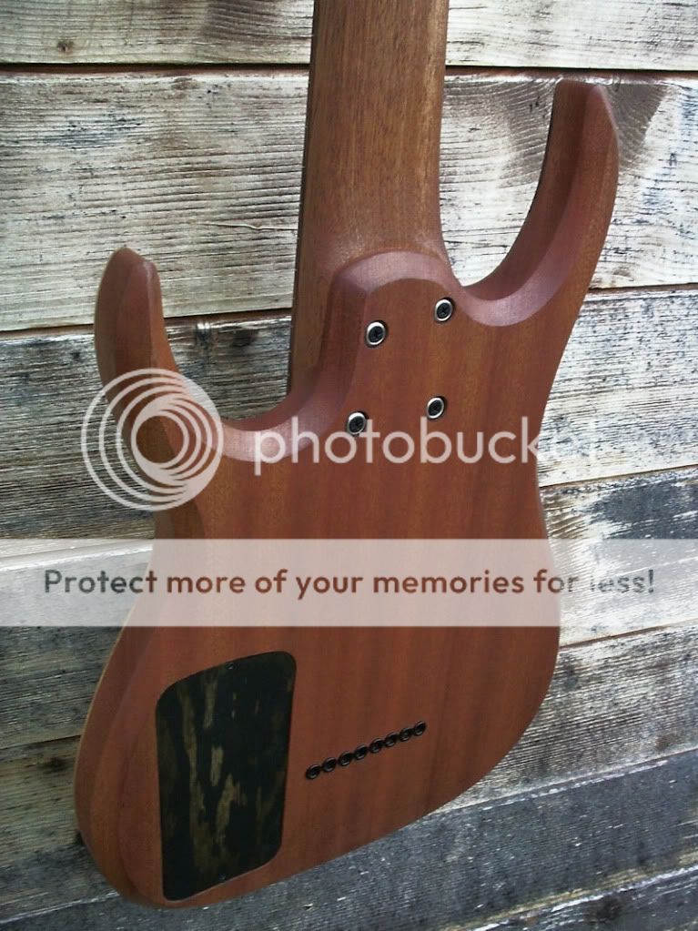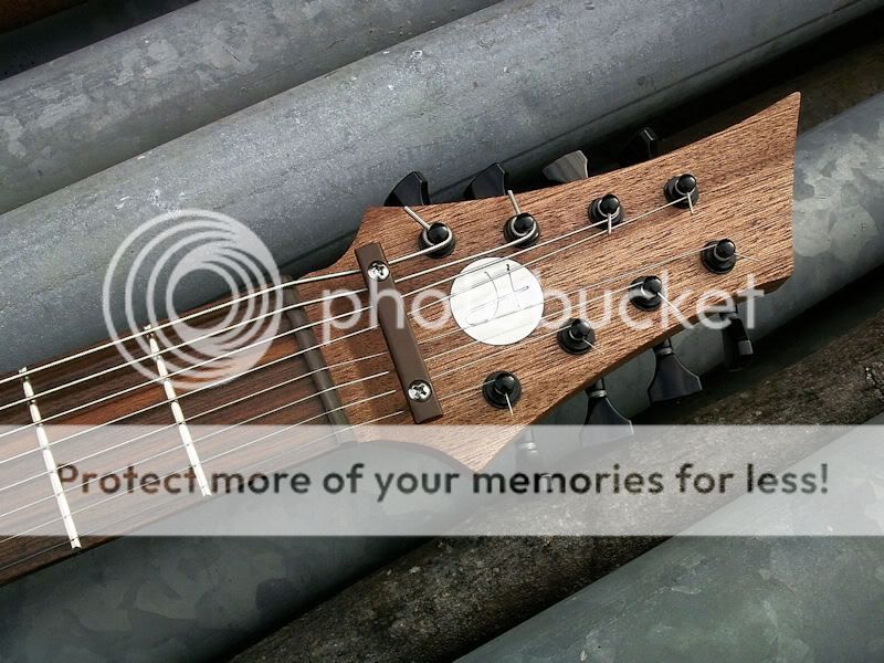 -Elle est assez atypique : je lui ai vissé un humbucker doré dans la rosace, et ajouté deux potards en bas de caisse (plus une prise jack sur la tranche).